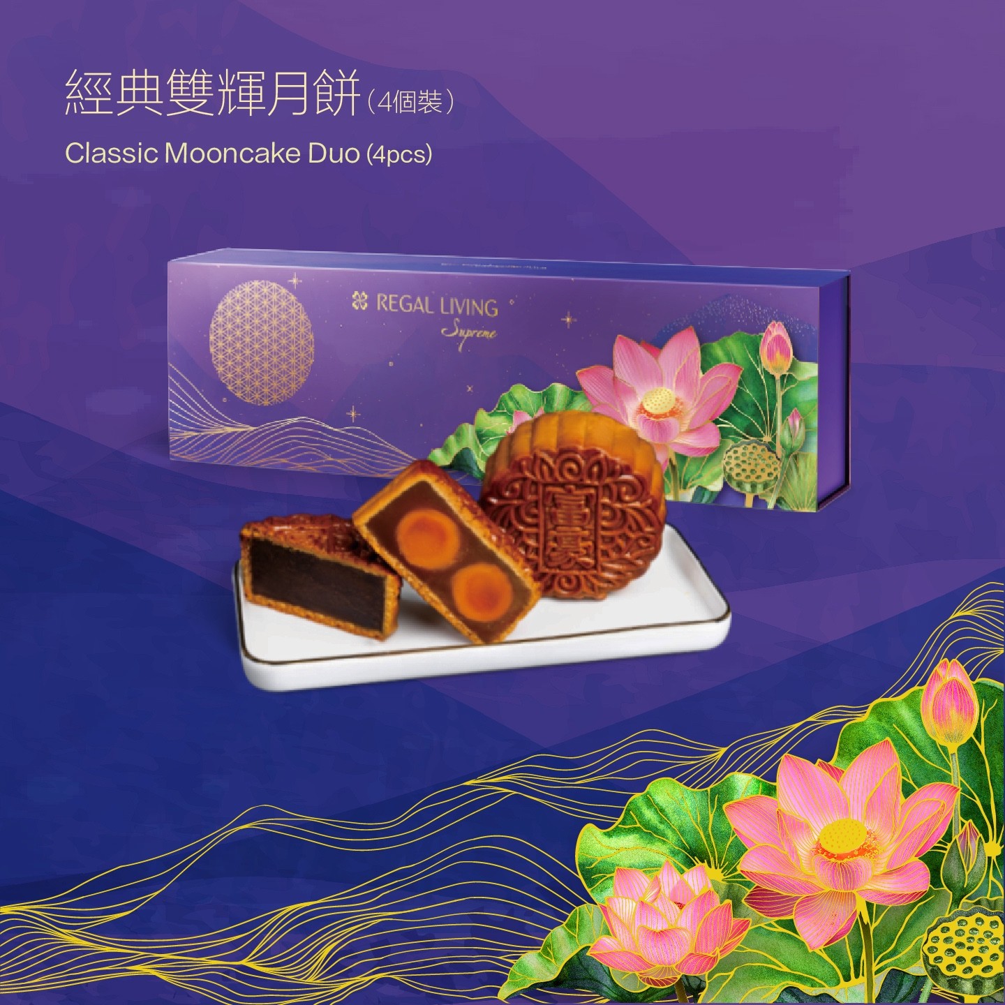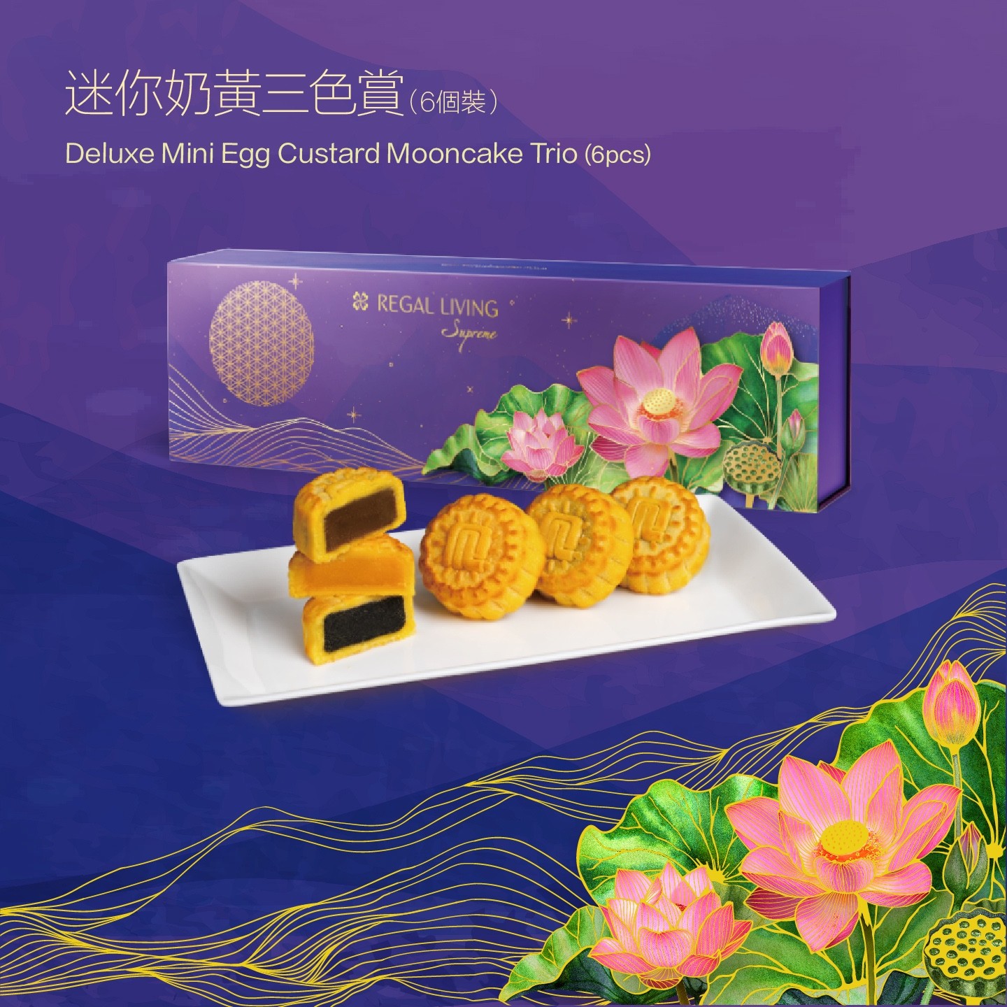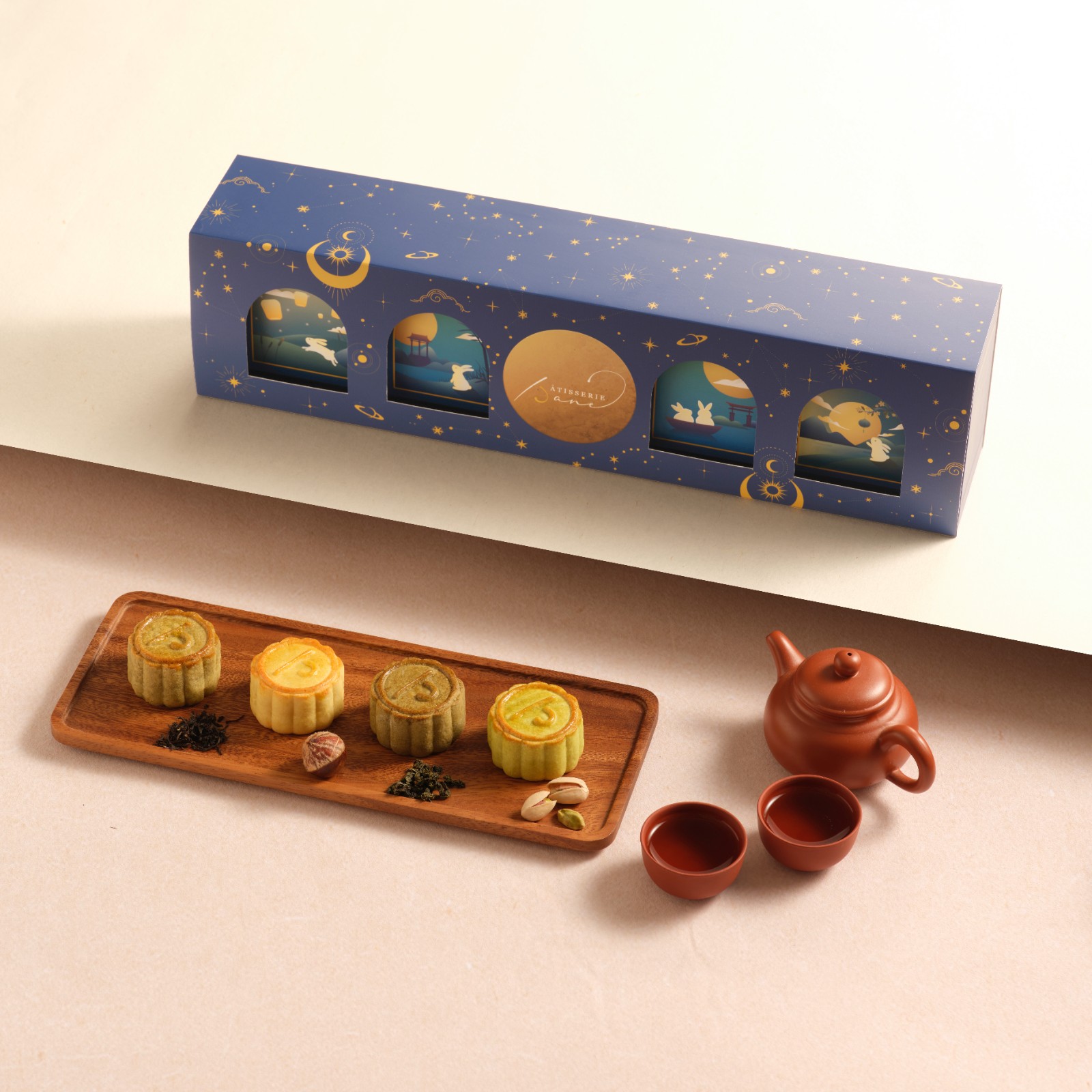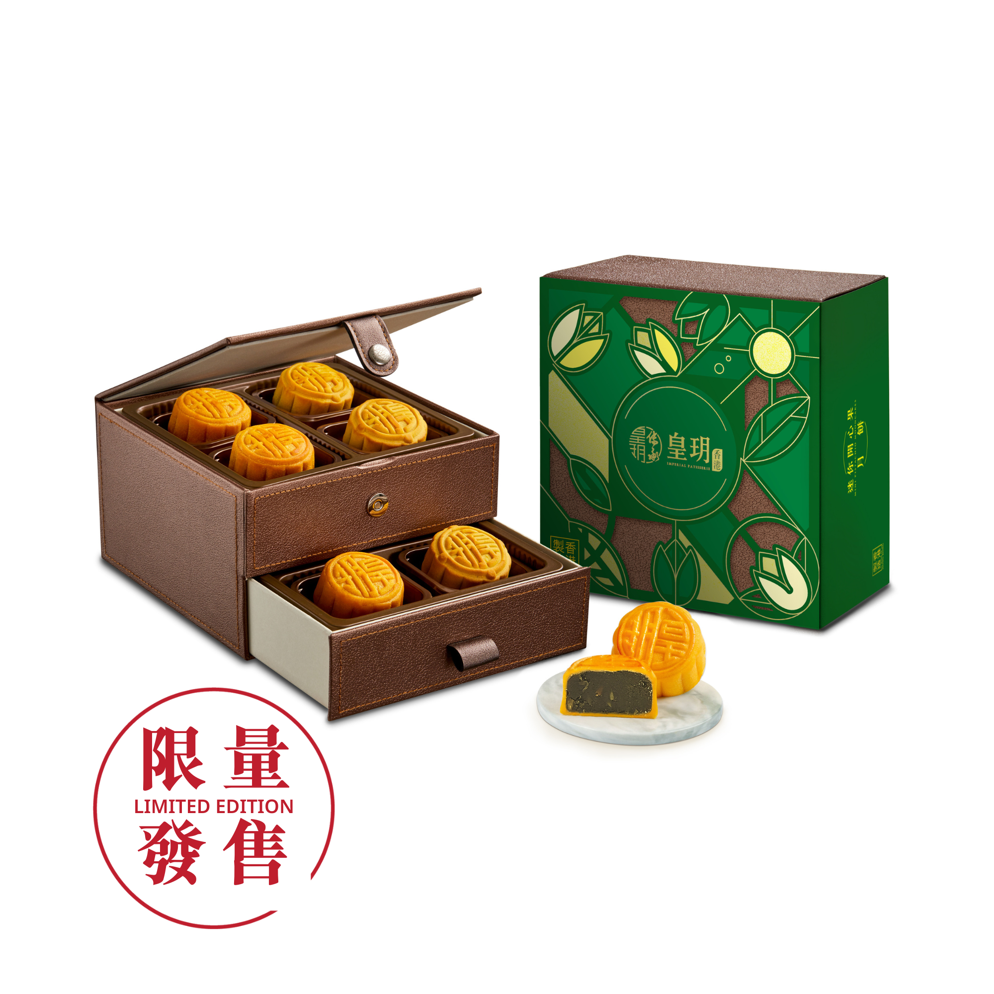 新推出「迷你奶黃三色賞」(會員價HK$268 原價HK$408),除迷你至尊奶黃月餅,還有新研製的迷你黑芝麻奶黃月餅及迷你焦糖海鹽咖啡奶黃月餅。三款月餅均以法國牛油及上等鹹蛋黃調製,餡料細膩香濃,餘韻悠長。迷你黑芝麻奶黃月餅口感濃郁,香氣四溢;迷你焦糖海鹽咖啡奶黃巧妙融合焦糖的甜與海鹽的微鹹,層次分明。「經典雙輝月餅」(會員價HK$368 原價HK$508)包含雙黃金黃蓮蓉月餅與陳皮豆沙月餅各兩個,前者採用頂級黃蓮蓉,口感醇厚濃郁;後者則以幼滑紅豆沙融合珍貴遠年陳皮,香甜中帶一抹回甘。「雙黃白蓮蓉月餅」選用絲滑白蓮蓉搭配鹹香油潤的蛋黃,齒頰間散發蓮子的清幽香氣,演繹懷舊鹹甜滋味。