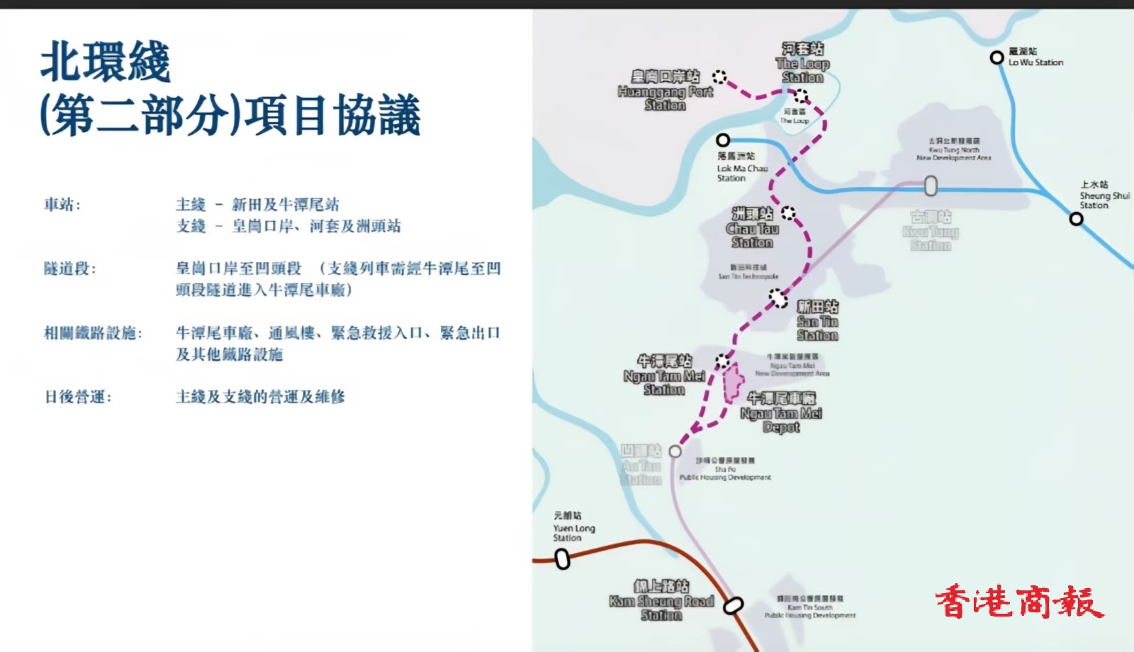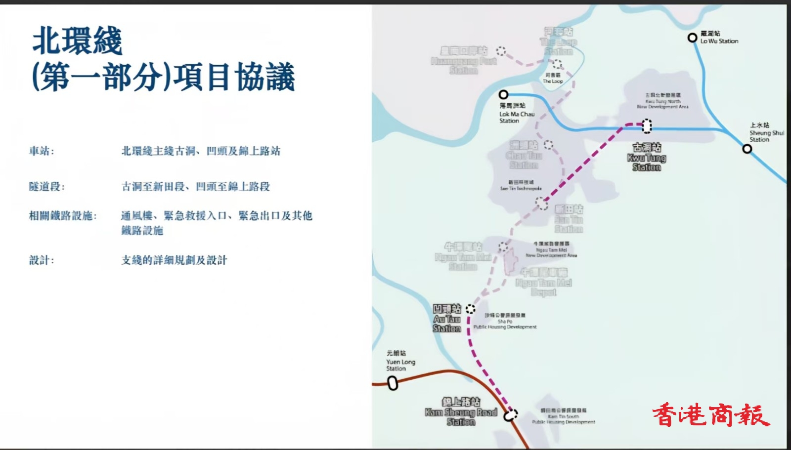 港鐵公司今午(3日)舉行北環線項目啓動禮,標誌着這項龐大的鐵路工程全力開展。北環線將成為北部都會區的集體運輸骨幹,提供連通東鐵和屯馬兩條主要鐵路線,以及連接深圳皇崗口岸的鐵路線。根據政府與港鐵簽訂的在北環線(第一部分)項目協議,估計造價約為314億元,港鐵須自行全數支付北環線第一部分項目造價,包括承擔在北環線第一部分項目協議中協定因執行項目而產生的土地徵用費用。
