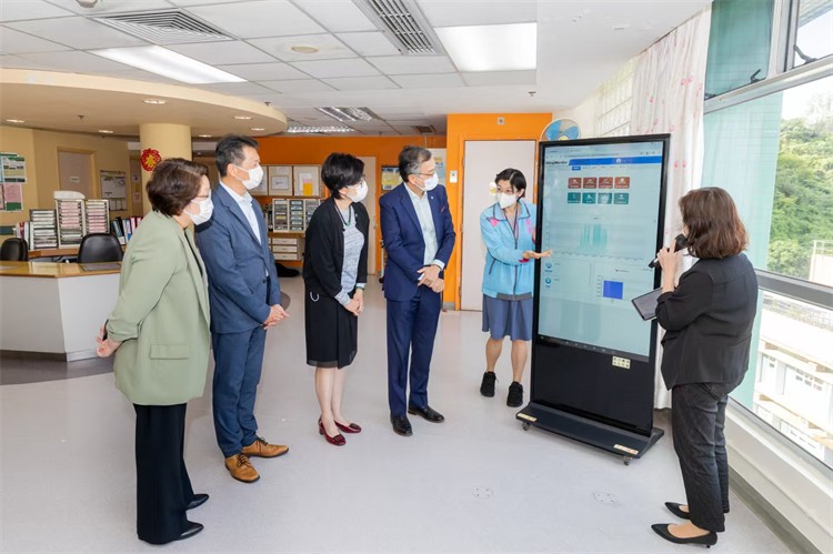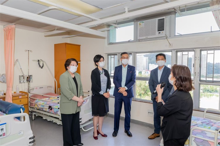 中華電力企業發展總裁莊偉茵與行政會議成員及基督教靈實協會行政總裁林正財,和環境及生態局常任秘書長(環境)張國財,昨日到訪靈實護養院,了解護養院正推行的節能減碳措施,以及在新計劃下獲資助的節能改善工程。