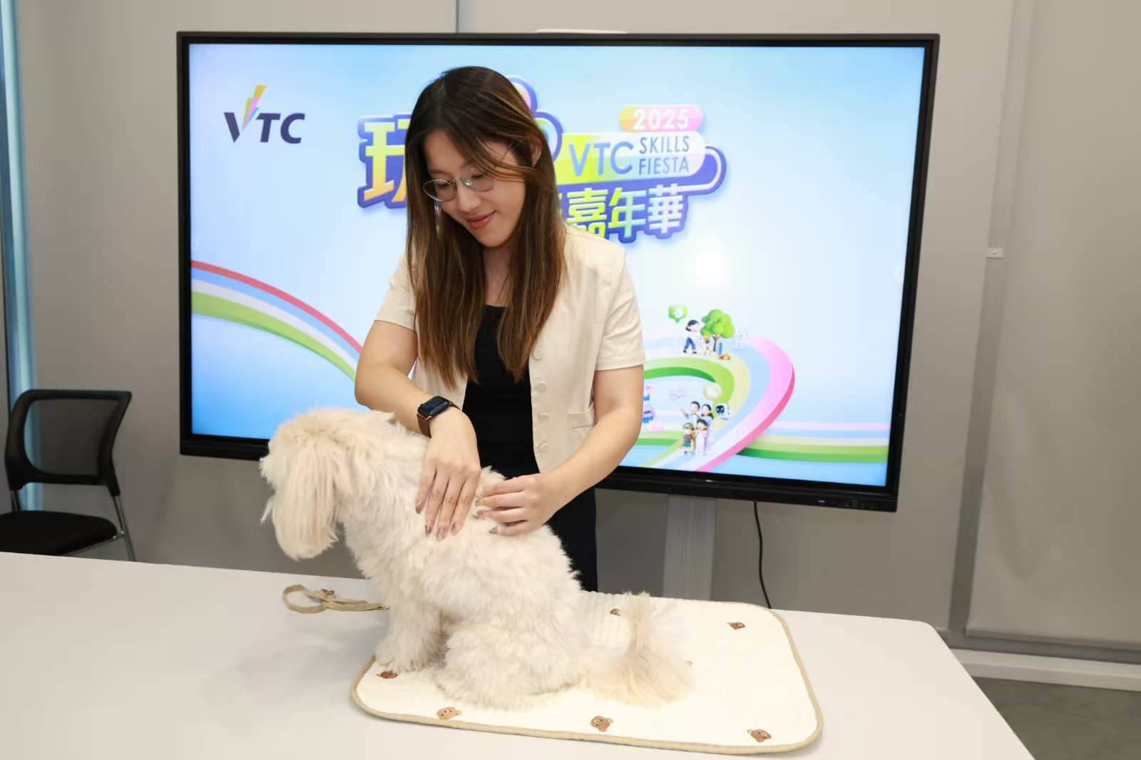 VTC「玩轉技能」嘉年華亦設有不同的體驗活動,家中飼養狗狗的參加者不要錯過其中寵物放鬆按摩示範,香港專業教育學院(IVE)柴灣院校健康及生命科學系講師章臻彤(Sherry)稱,活動示範分享寵物按摩技巧,以柔和的手法對穴位施加壓力,促進狗狗的血液循環,讓他們徹底放鬆、舒緩壓力與關節疼痛。