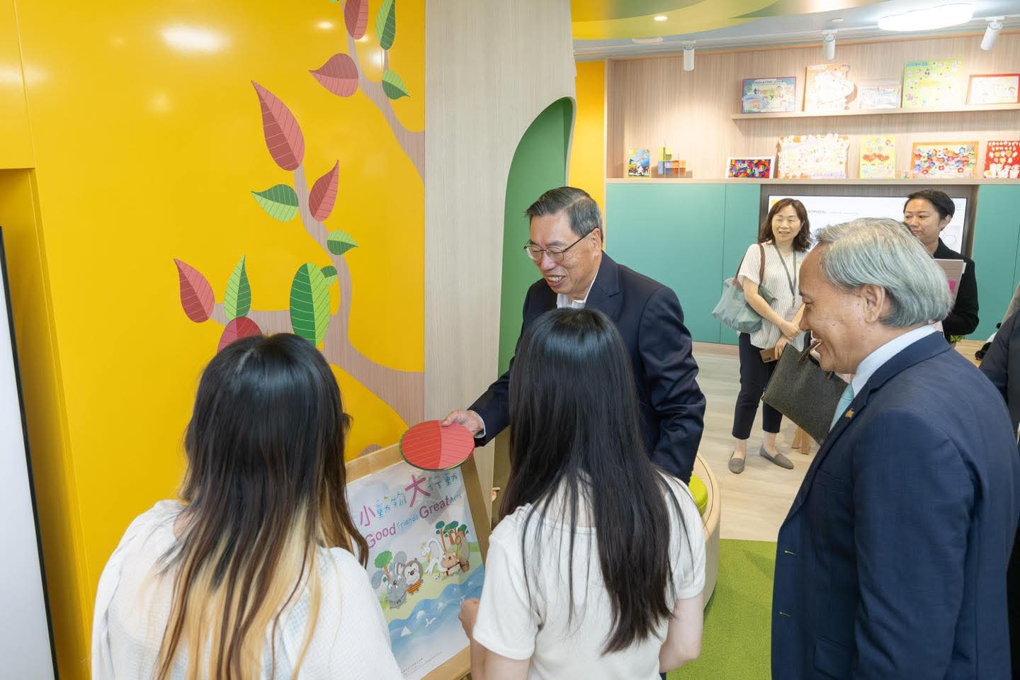 梁君彥提及,其中為幼稚園學生而設的兒童學習室(Children's Corner)最令人眼前一亮。學習室原本位於地下大堂圖書館旁邊,現已遷往3樓,面積較以前大增50%,設計以模擬大樹、藍天白雲為主調,色彩繽紛,賞心悅目。這處本來是秘書處的辦公室,但秘書處樂意遷出,讓小朋友可在美麗的環境中,愉快學習公民教育課。他和知專師生都相信,這個擁有無敵維港海景的全新兒童學習室,很可能是全港景觀最靚的兒童學習室。歡迎幼稚園學生到訪。
