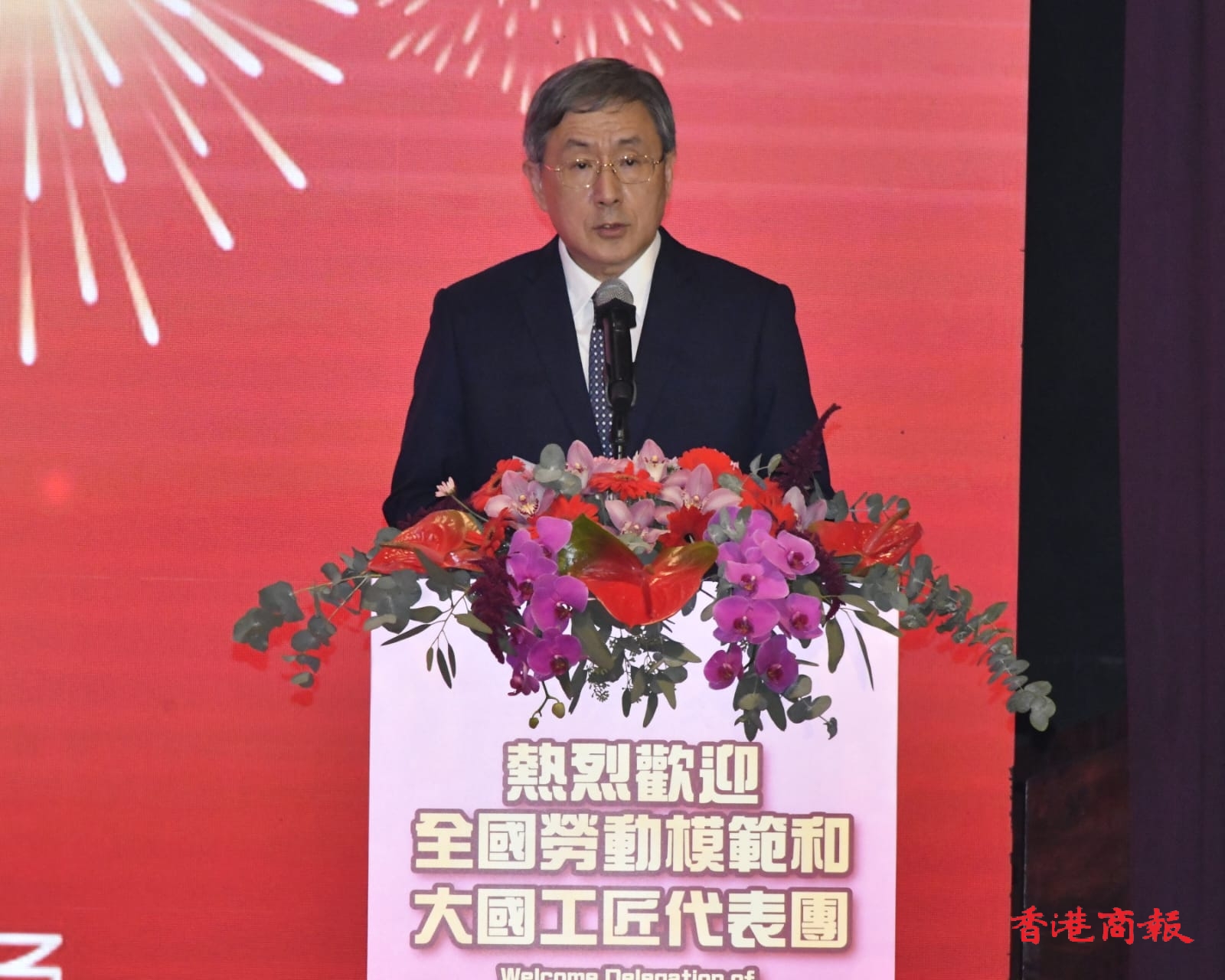 全國勞動模範和大國工匠代表團歡迎儀式今日舉行,出席的嘉賓包括政務司副司長卓永興、中華全國總工會副主席魏地春、中聯辦社會工作部部長劉松林等人。卓永興表示,衷心感謝中央港澳辦、國務院港澳辦的全力支持,促成代表團這次的訪問,充分體現國家對香港的重視和愛護。