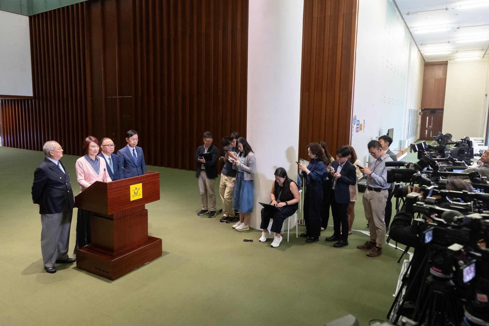 立法會內委會主席李慧琼(左二)等人會見傳媒。立法會供圖