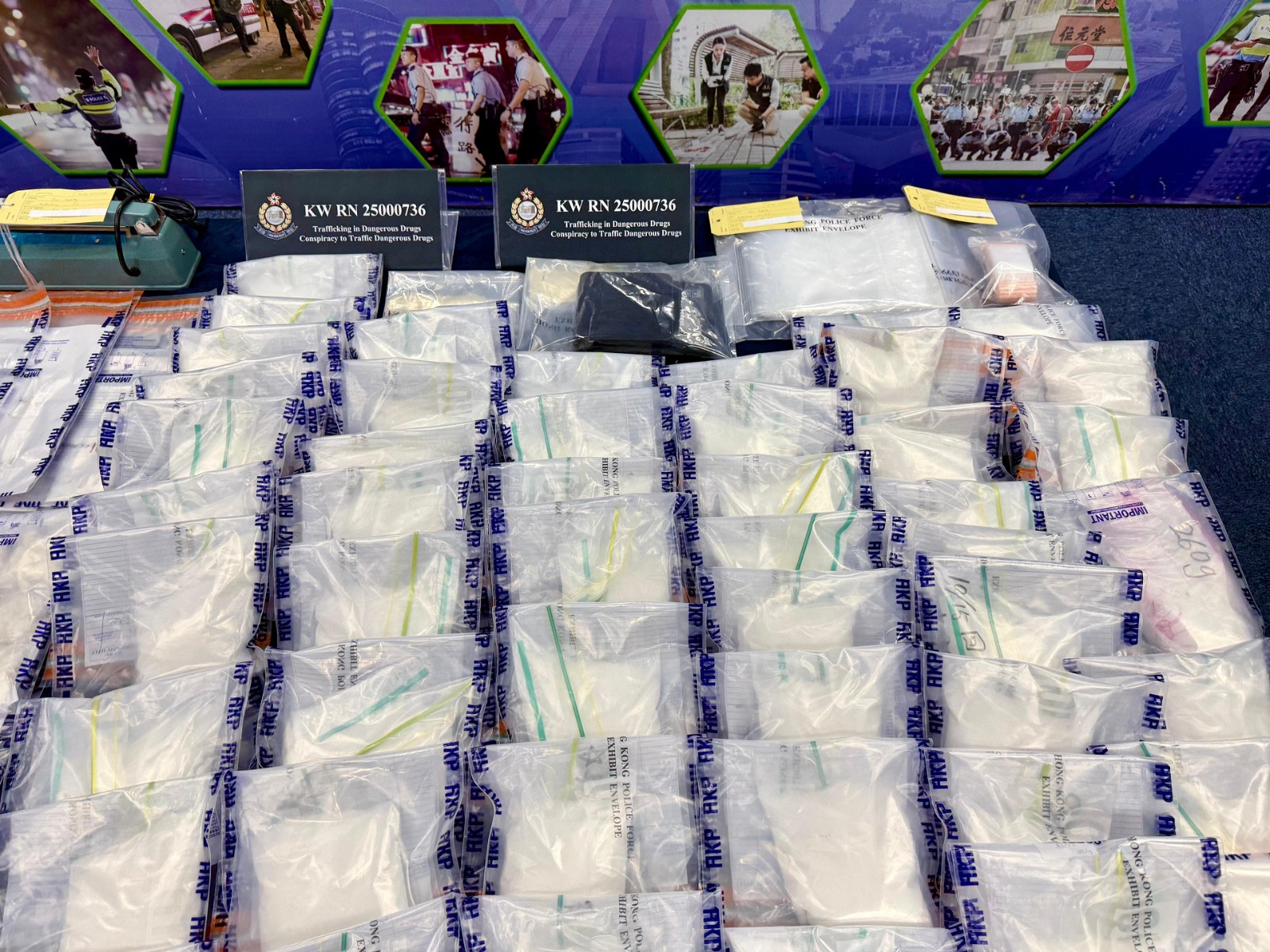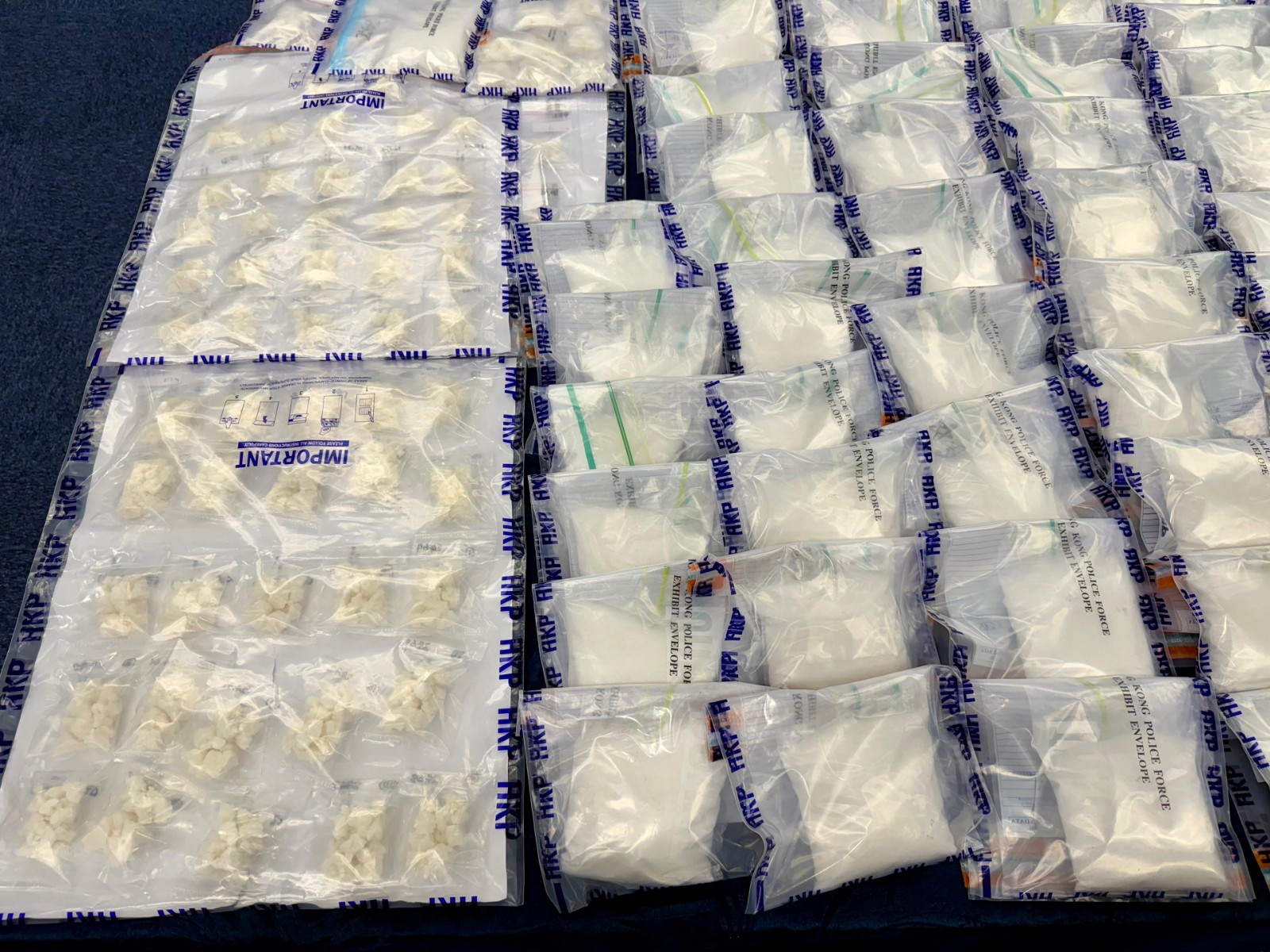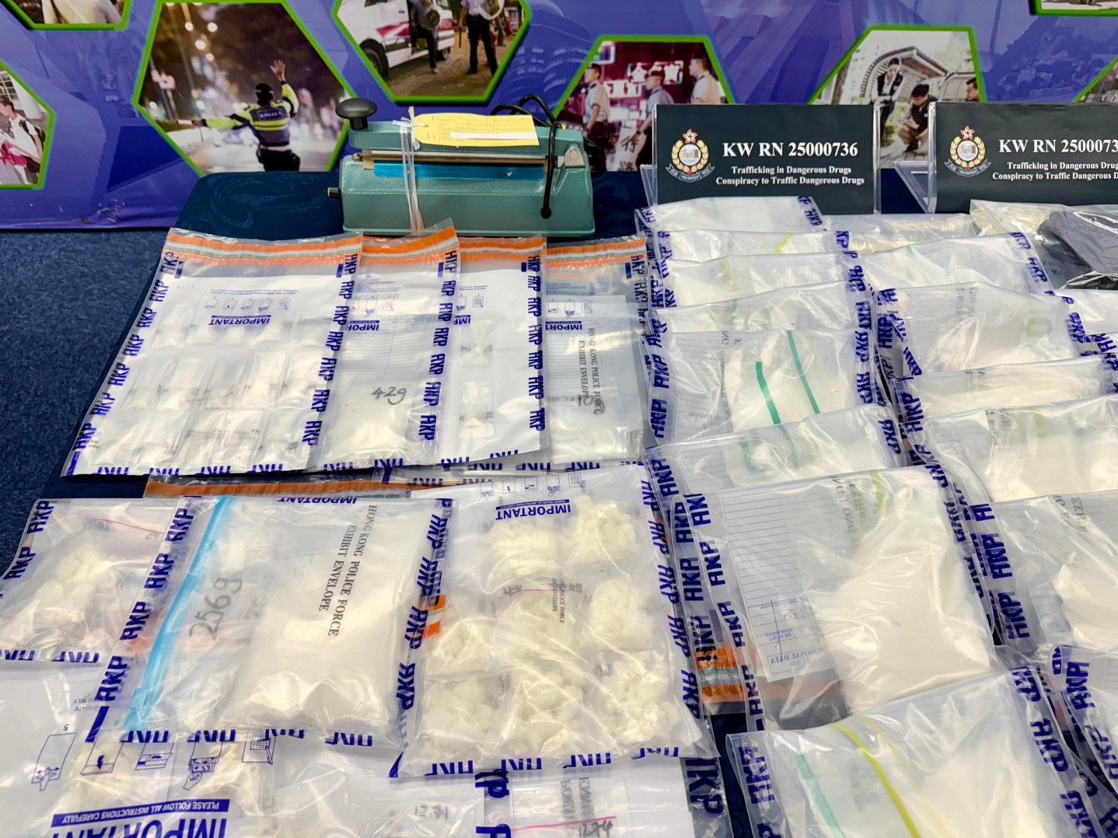 在昨日(21日)西九龍重案組在深水埗和旺角進行拘捕行動,先在深水埗一幢大廈內拘捕一名16歲男子,在其身上搜出約130克懷疑霹靂可卡因和約260克懷疑氯胺酮,相信被捕男子當時正準備將毒品交給販毒集團作販賣。