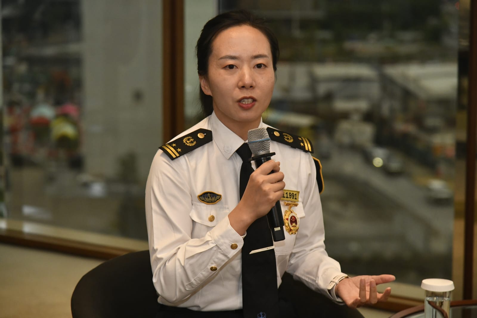 作為我國首位遠洋公務船女船長,詹春珮是很多女性的奮鬥和學習目標,她向全港女青年寄語:「不管你想從事航運或其他行業,你覺得有挑戰性的,就要勇敢去試,不論各個領域,你不試一試怎會知道行不行,去大膽挑戰自我吧。」