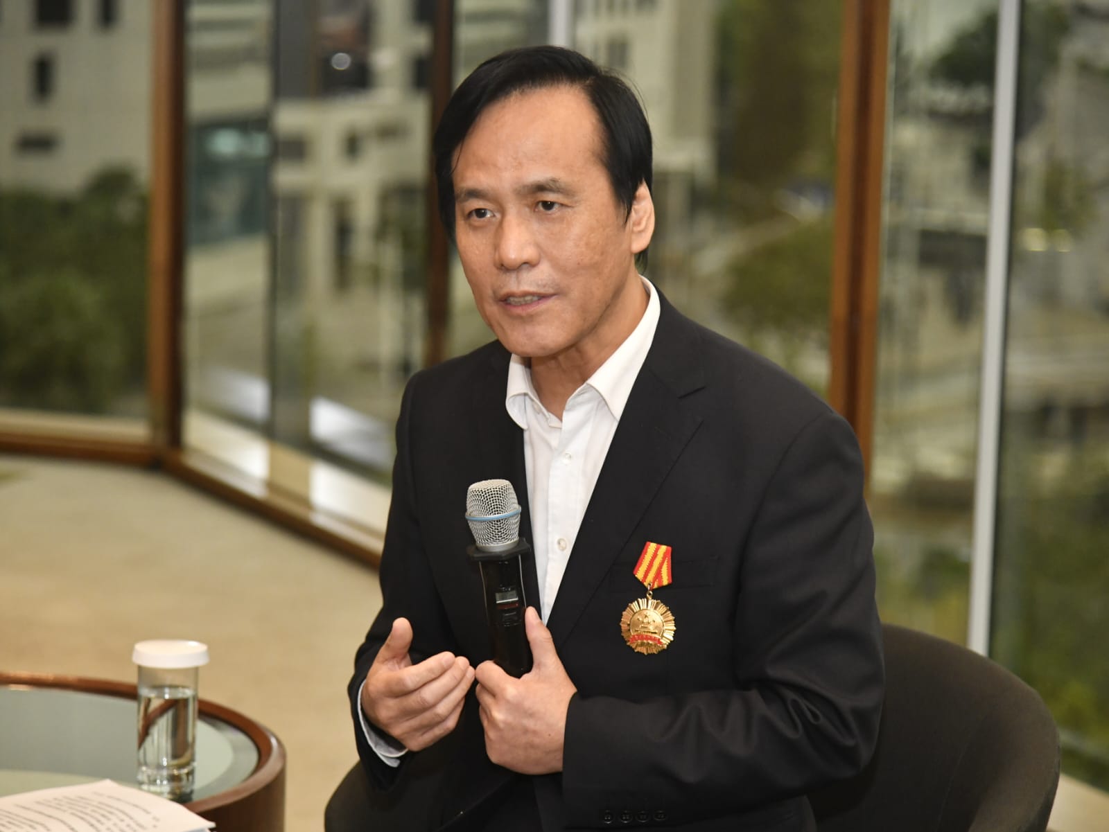 頂圖:全國勞模範和大國工匠代表團高鳳林(右)、詹春珮(左)分享來港交流成果。