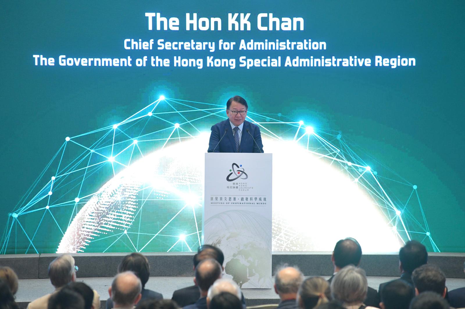陳國基致辭時表示,香港目前正快速崛起,成為國際創新與科技中心。今年9月,深港廣州創新集群榮登全球創新指數全球百強創新集群榜首,人才驅動科技發展,青年科學家在推動科技進步中扮演的重要角色。特區政府制定了一系列政策,吸引戰略性人才來港發展,成果令人鼓舞。在今年的世界人才排名中,香港名列亞洲第一、全球第四。在「理科畢業生」類別中,香港更是位居全球榜首。