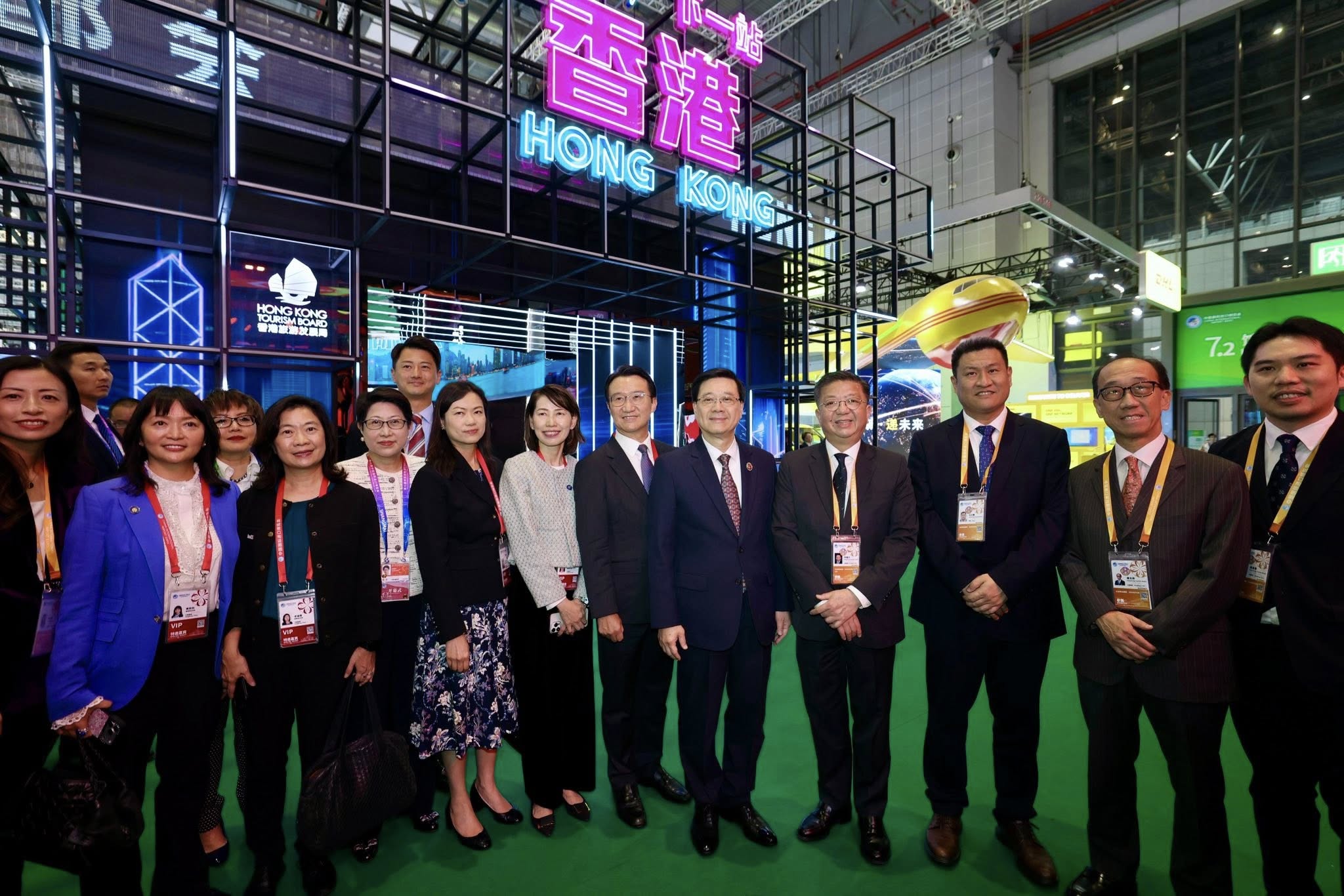 第八屆進博會今日(5日)起至下周一,在上海國家會展中心舉行,今年有380家香港企業參展,數目創歷來新高,行政長官李家超率領特區政府代表團出席開幕式,並參觀中國館香港展區。李家超今午在社交平台發文表示,國務院總理李強視察香港展區時,他向總理介紹了今年以「內聯外通·璀璨新篇」為題的香港展區,並匯報了香港在各領域的重要國際排名和優勢。