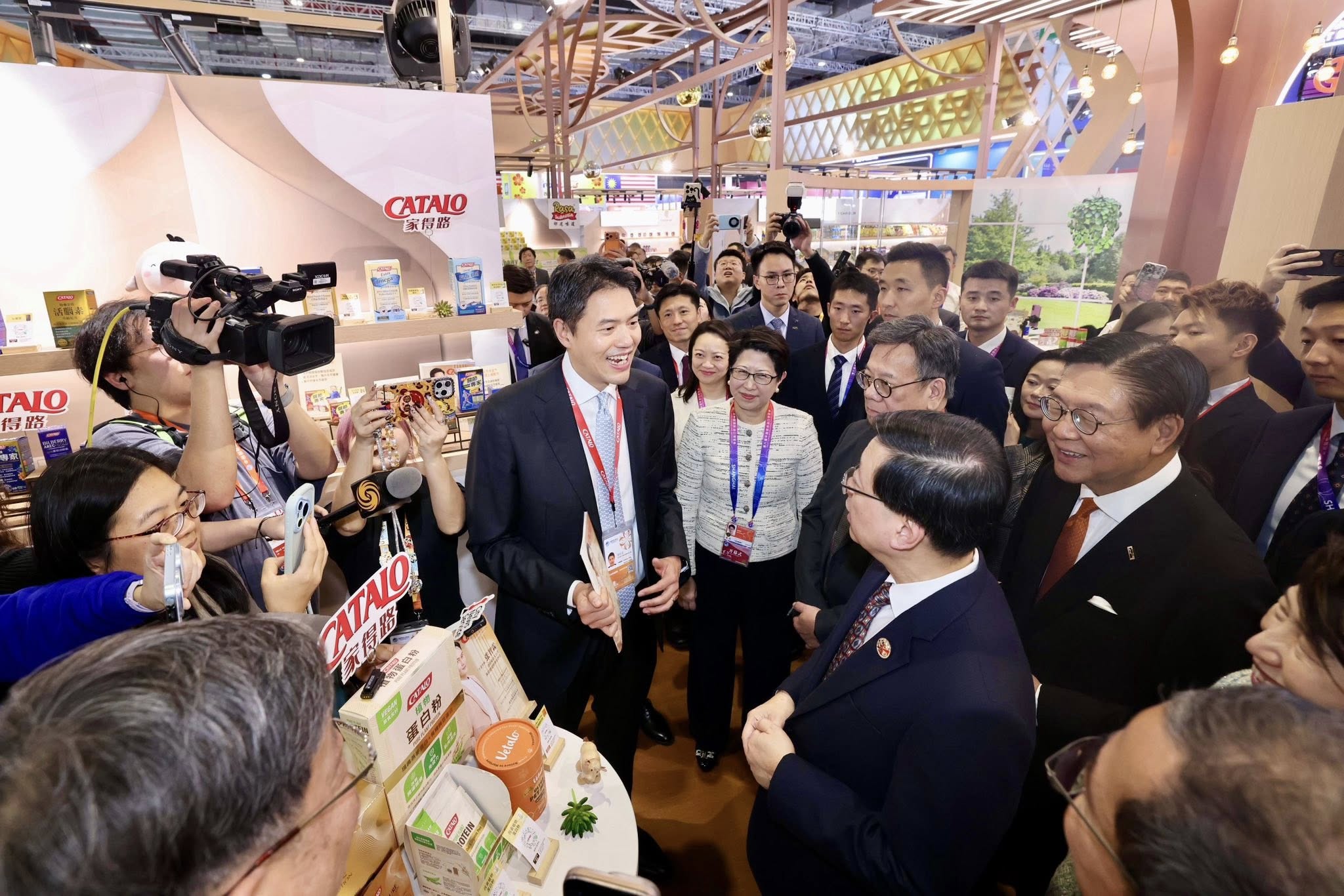 李家超今早與商務及經濟發展局局長丘應樺一同出席進博會暨虹橋國際經濟論壇開幕式,並參觀國家展中國館香港展示區。他感謝國家支持香港參與進博會,以及商務部再次在國家館設置香港展區,充分突顯香港是國家整體發展的重要部分。