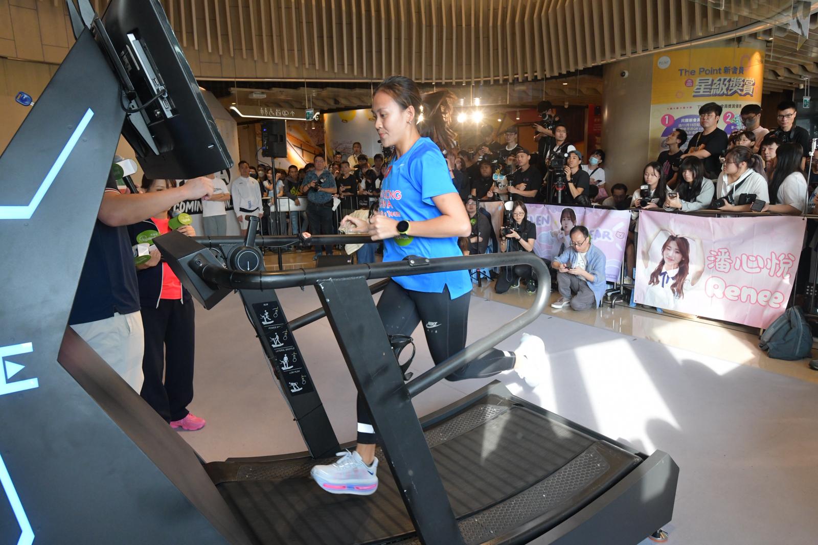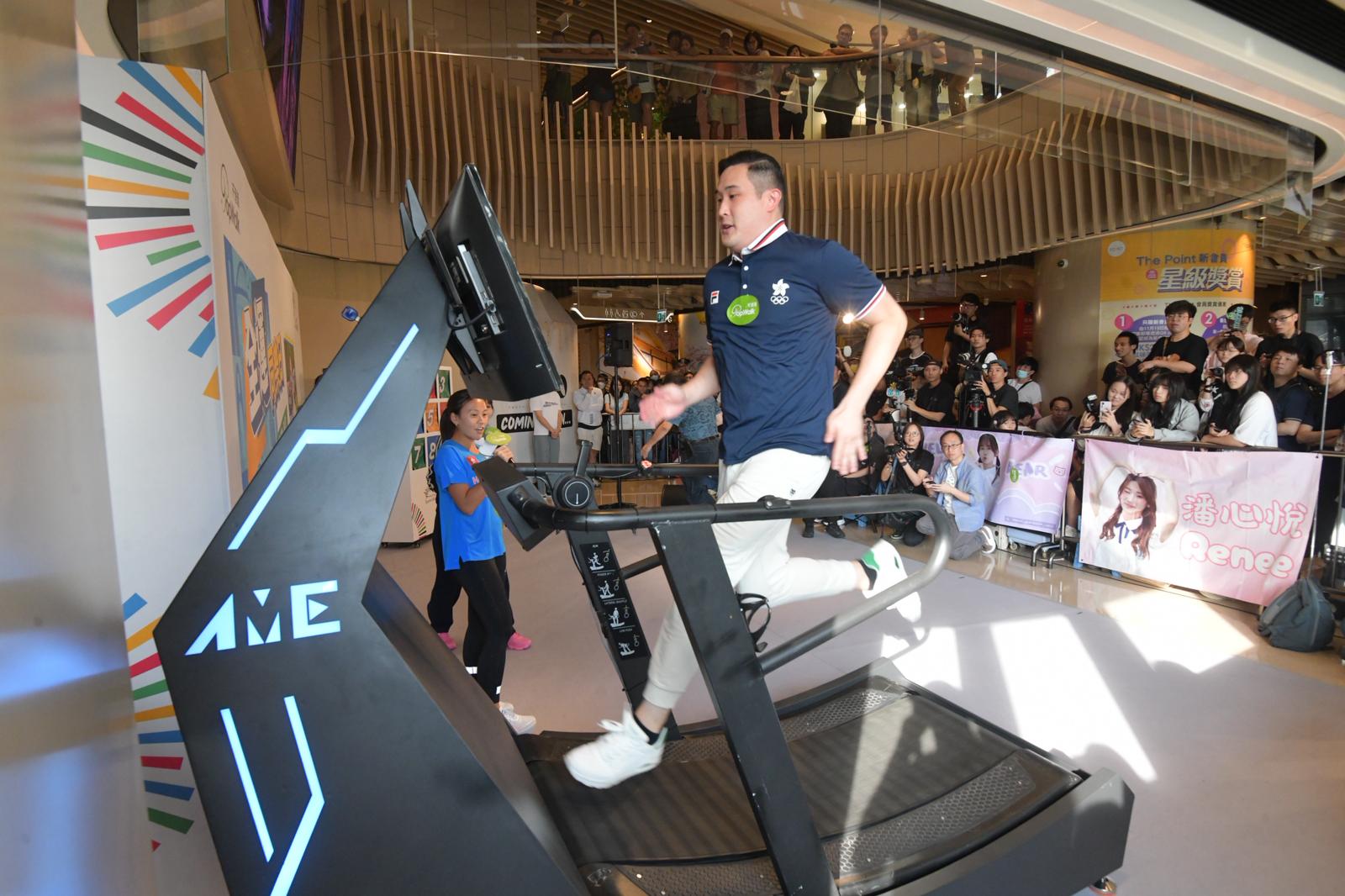 黃卓寧和唐焯彬,又應大會司儀要求,以長跑和短跑的方式,踏上跑步機一展身手,觀眾們都報以掌聲以示支持。