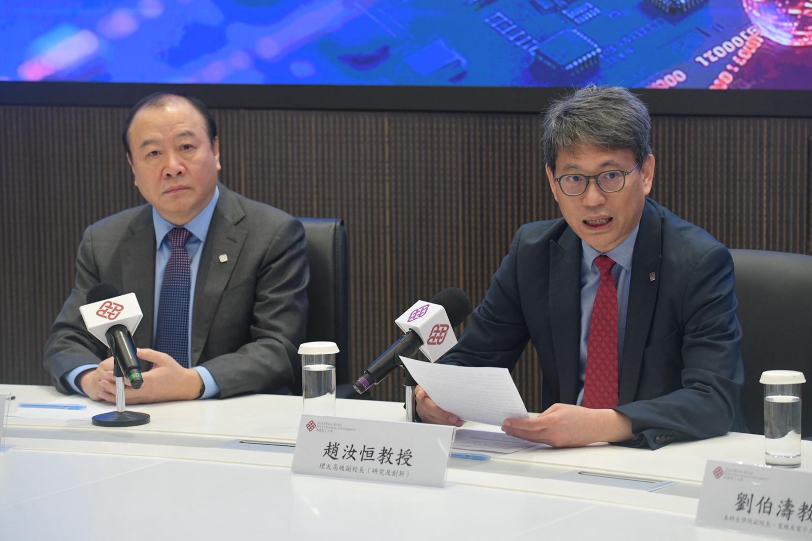 頂圖:理大今早舉行記者會,研究團隊詳細介紹晶片及相關技術,並闡述其在行業的應用前景。