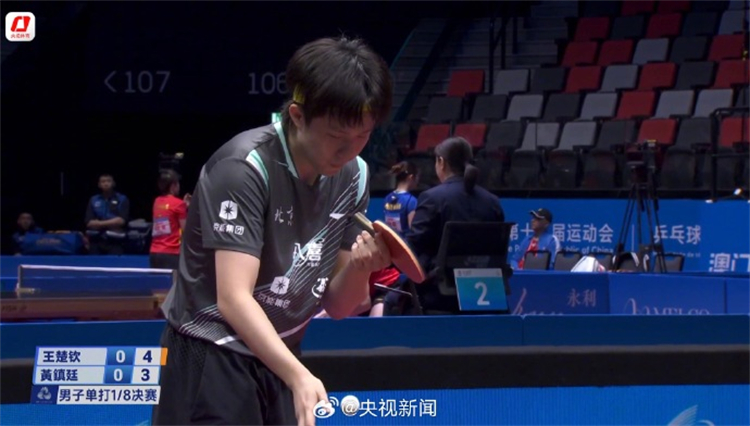 11月12日,第十五屆全運會乒乓球男子單打1/8決賽,王楚欽4:3戰勝黃鎮廷,晉級8強。