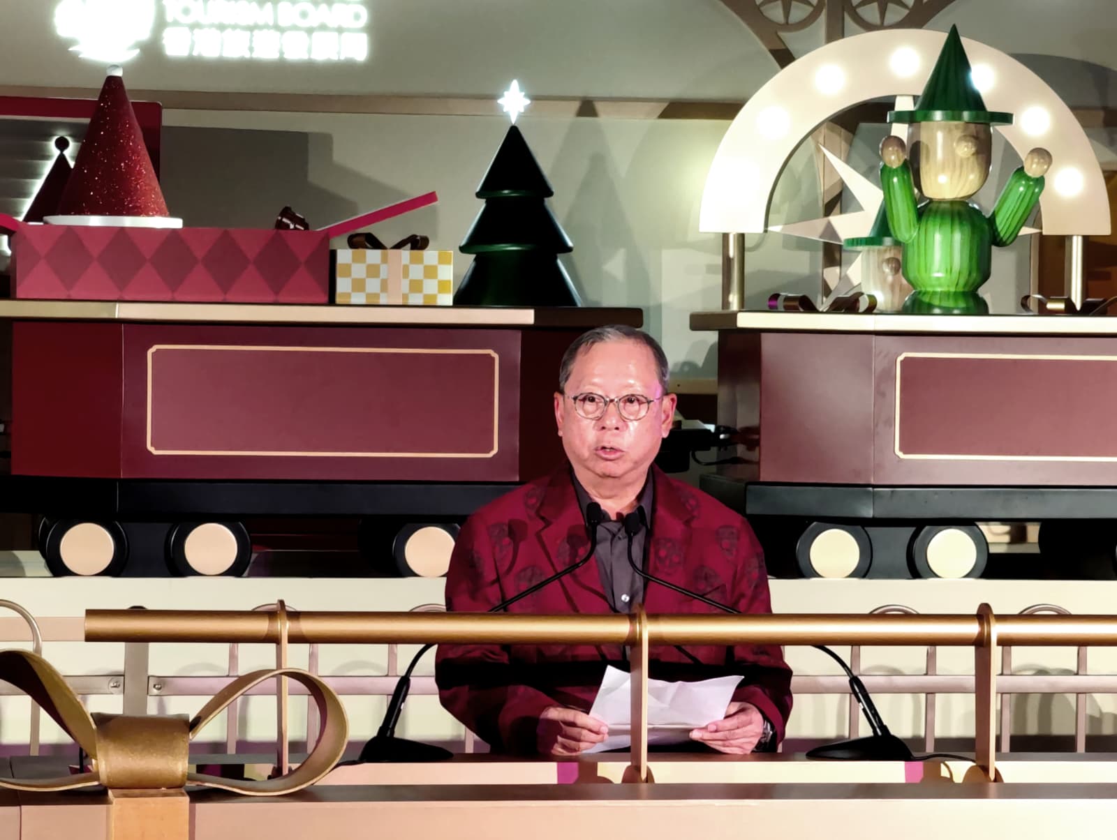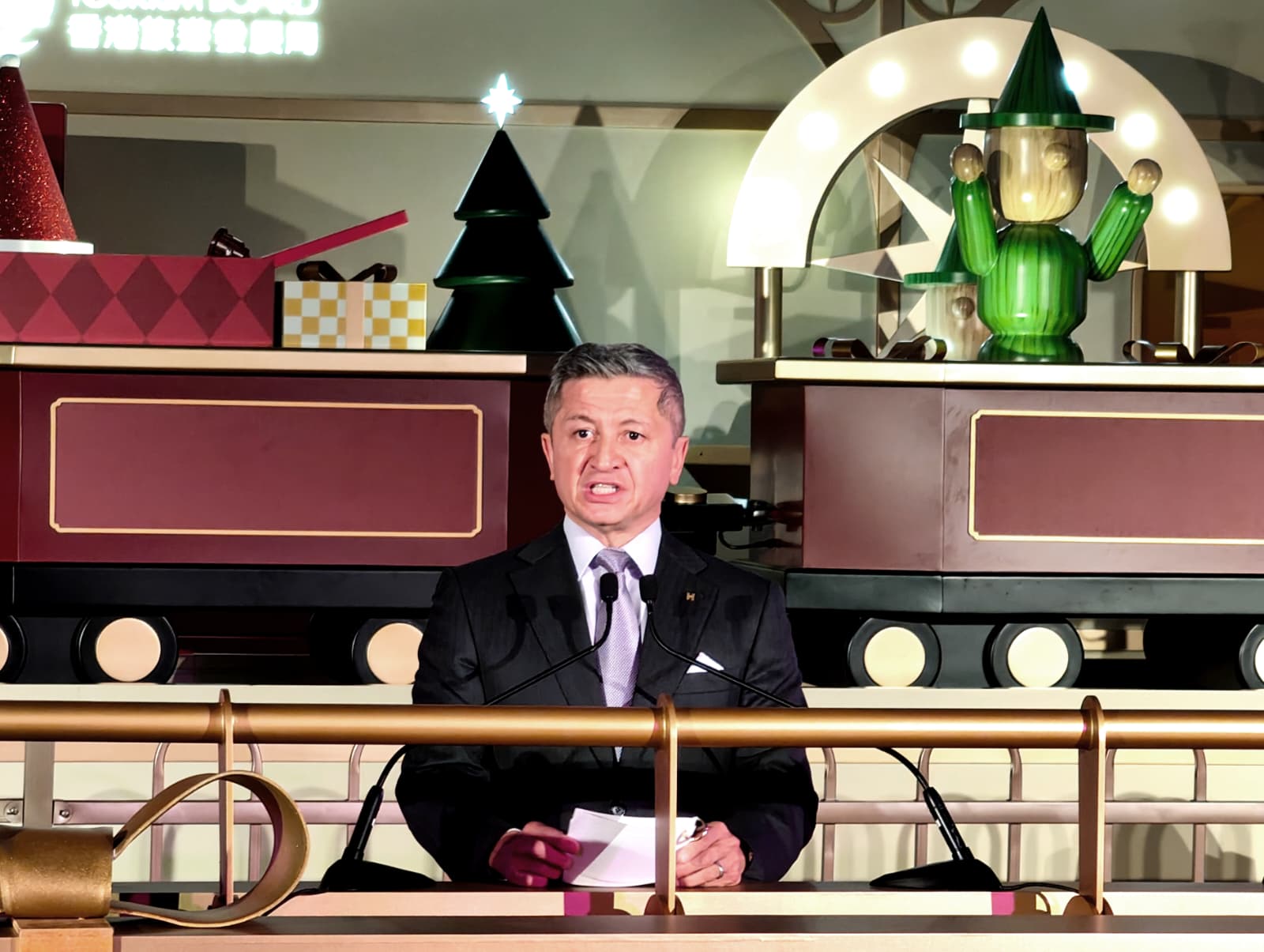 史米高則說,今晚不止是點亮聖誕樹,更是啟動整個城市的節日氣氛,他還介紹了即將推出的星光長廊燈飾和置地廣場的 裝置,希望為市民和旅客帶來美好回憶,進一步提升香港作為冬季旅遊目的地的地位,