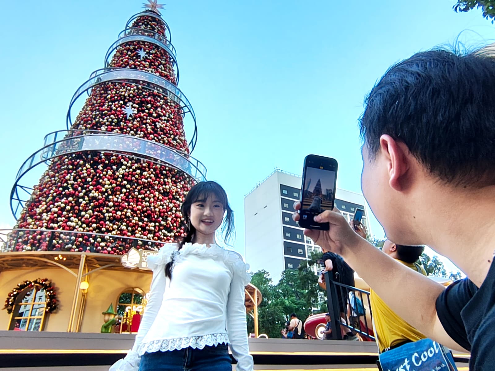 巨型聖誕樹吸引市民前來拍照打卡留念。