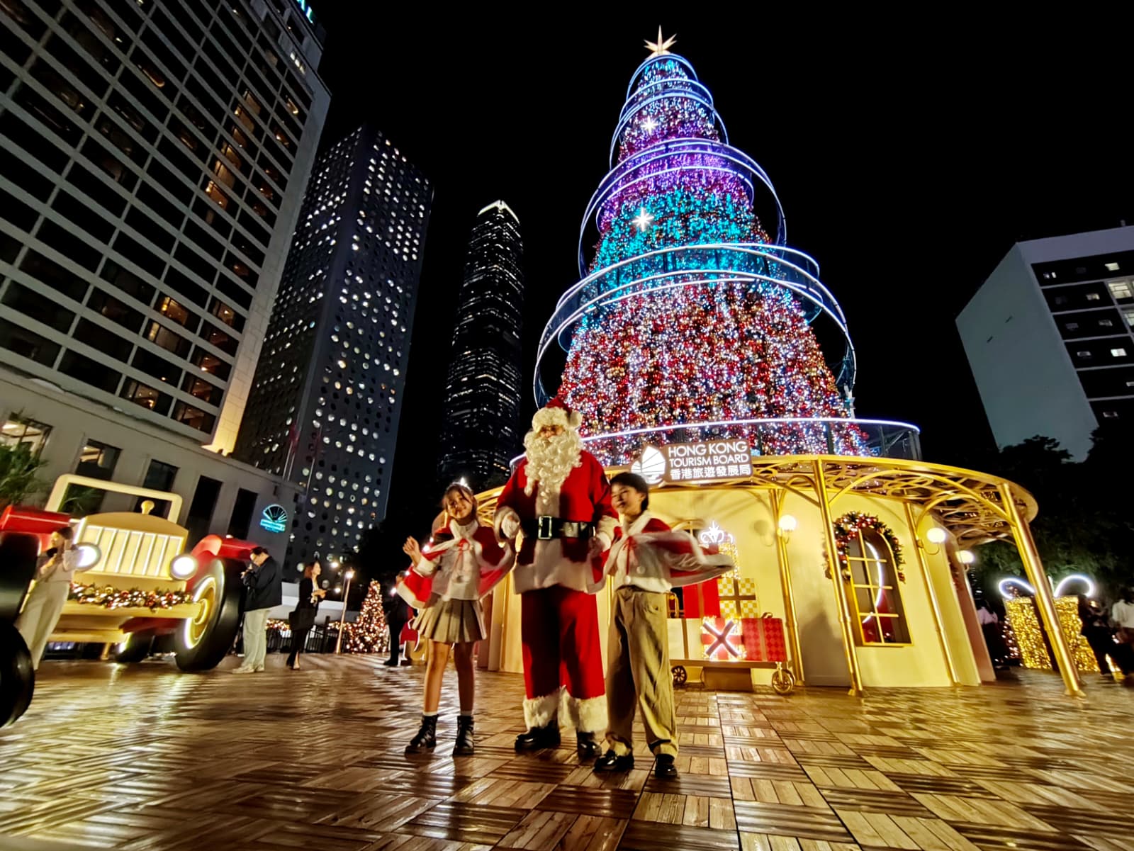 聖誕節將近,香港旅遊發展局年度盛事「香港繽紛冬日巡禮」今日(14日)在中環皇后像廣場揭幕。旅發局聯同置地公司攜手呈獻的「冬日小鎮.中環」焦點節目「聖誕天地」率先於皇后像廣場登場,讓市民旅客沉浸於浪漫醉人的冬日氣氛。「聖誕天地」合共打造五大冬日打卡熱點。包括巨型戶外聖誕樹、巨型玩具飛機及巨型玩具吉普車、聖誕老人小屋、巨型玩具飛船及小火車,以及星光火車站。