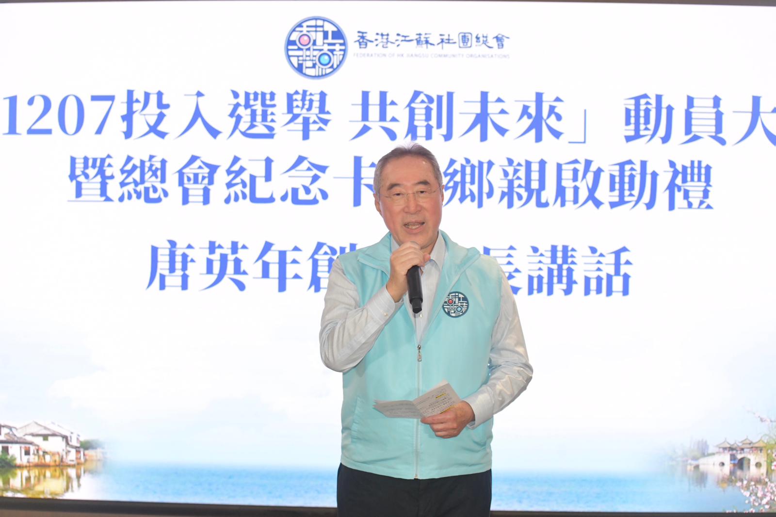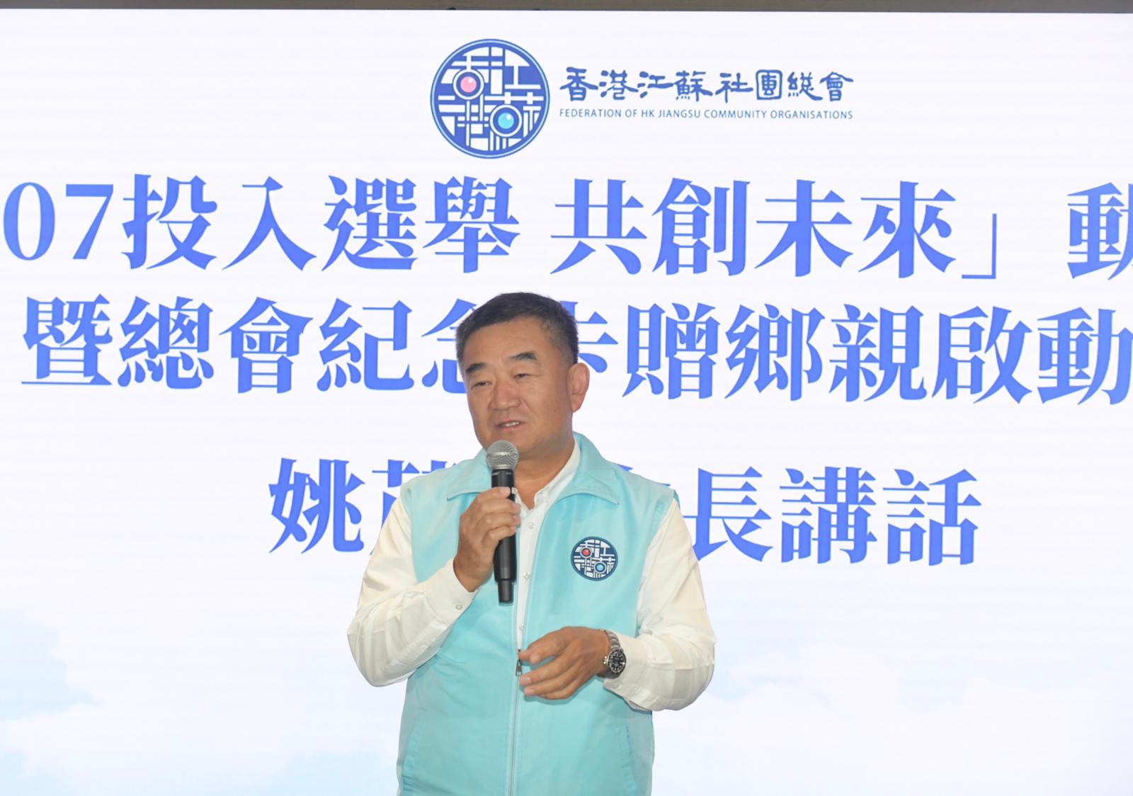 第8屆立法會選舉將於下月7日舉行,香港江蘇社團總會今日(15日)早上舉行「1207投入選舉,共創未來」動員大會暨總會紀念卡贈鄉親啟動禮。總會呼籲選民,在選舉當日前往投票,用神聖的一票,選出愛國愛港,有能力、有擔當和有熱誠為市民服務的立法會議員,為香港創建更美好將來。