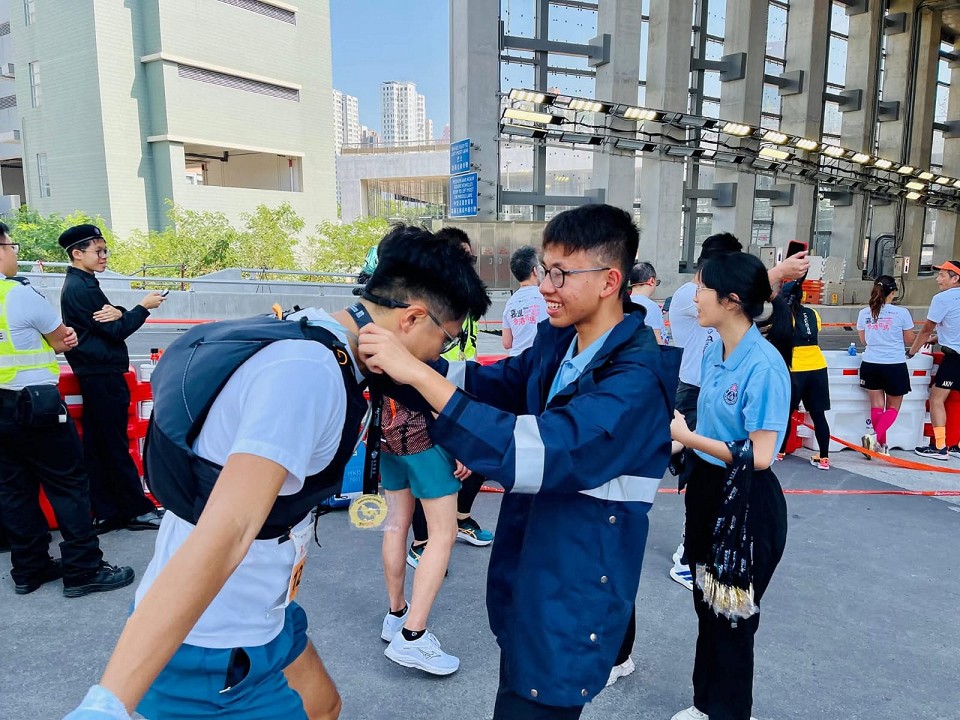 一眾團員雖然要在清晨到達終點區,但仍無阻服務熱誠,合力為賽事做好準備。透過是次服務,團員除可感受大型體育活動歡樂氣氛,亦可從中了解舉辦全港性大型活動的過程及細節。(記者 區天海)