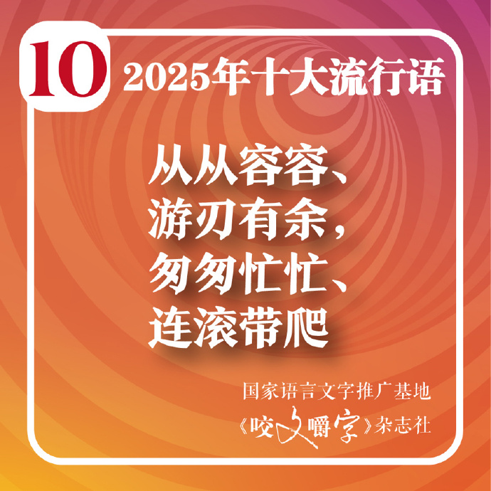 內地語文雜誌《咬文嚼字》今日 (12月2日)發布「2025年十大流行語」,這一年度的大事要事、社會熱點,都在「流行語」中得到了體現,「韌性」位居榜首,「蘇超」「賽博對賬」也高票入選,「具身智能」「數字遊民」「穀子」「活人感」等亦入選。
