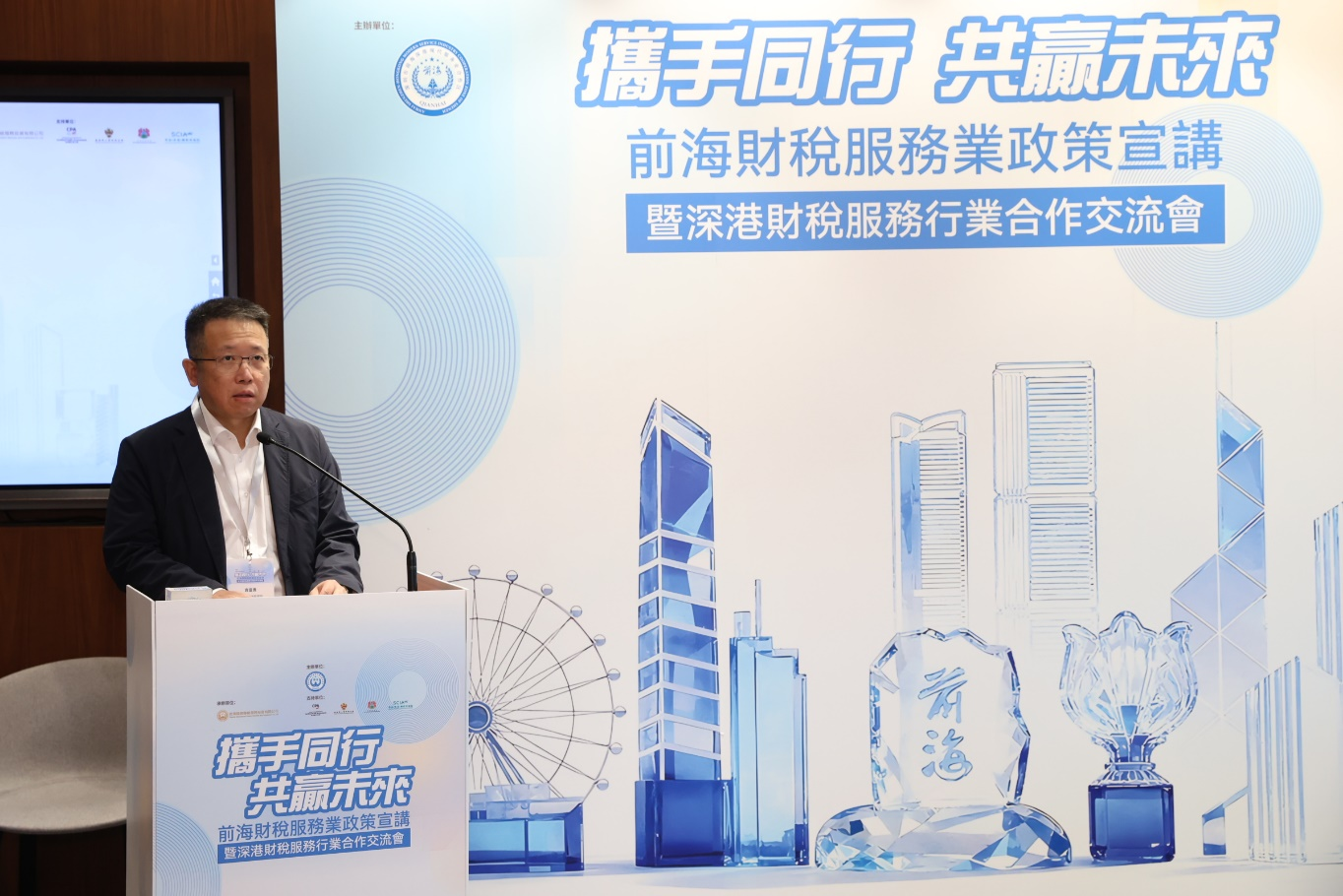 深圳市前海管理局副局長袁富勇在致辭中表示,前海作為深港合作「橋頭堡」,正與香港深化財稅服務協作,共拓企業國際化發展機遇。他同時強調,「香港的國際化專業優勢與前海的本地化服務能力能夠進一步深度融合,共同構建起國際化的財稅服務生態」,推動粵港澳大灣區高質量發展。