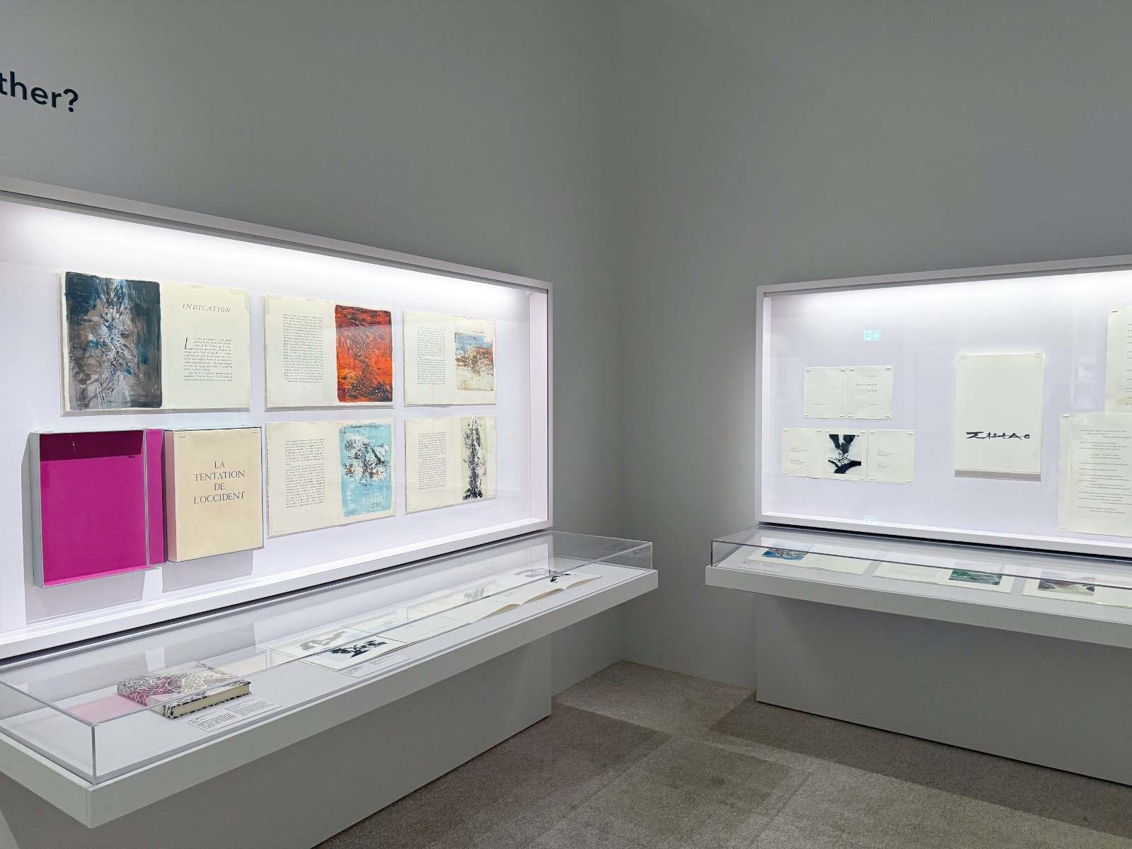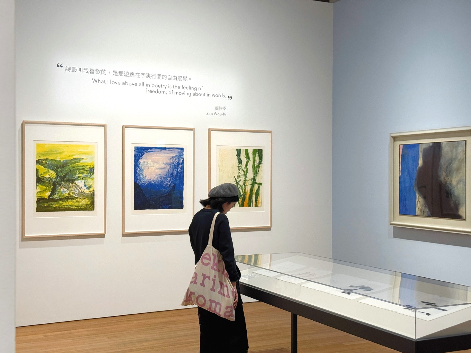 版畫作為具有協作性與傳播性的藝術形式,呈現了如何將趙無極與詩人、作家、藝術家及出版商緊密聯繫,奠定其作為跨文化使者的地位。他與法國詩人亨利.米修長達數十年的合作尤為典範,展品《Lecture par Henri Michaux de huit lithographies de Zao Wou-Ki》是趙無極與詩人亨利.米修共同合作,這三幅風景畫中扁平的線條形狀,呼應了兩個不同的靈感來源,分別為歐洲現代藝術及中國漢代墨拓。趙無極從風景畫汲取靈感,製成版畫。後來,這些版畫配上作家兼藝術家享利.米修的詩作,結集成書。據曾黎華介紹,米修非常喜歡亞洲藝術,曾於1930年代訪華:「米修對趙無極的作品深感共鳴,甚至初次目睹超無極的版畫時,便已大為感動,立即為其賦詩。同時,成為趙無極唯一一本先有畫再有詩的合作書籍。」經過是次合作,二人成為一生的摯友。米修在不同場合引薦趙無極,讓趙氏結識畫廊主和出版商,開創新機會。