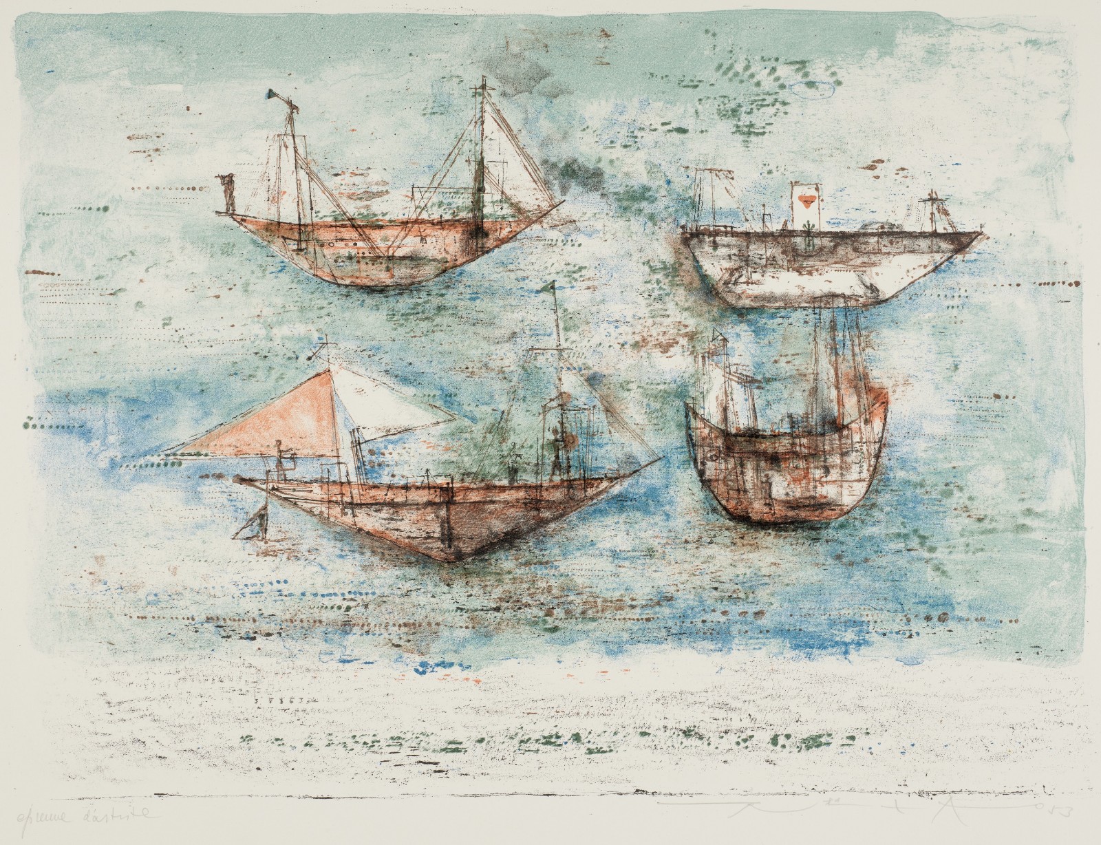 趙無極作品《海上帆船》,石版印刷,1953年。(圖片由M+、趙無極cProLitteris提供)