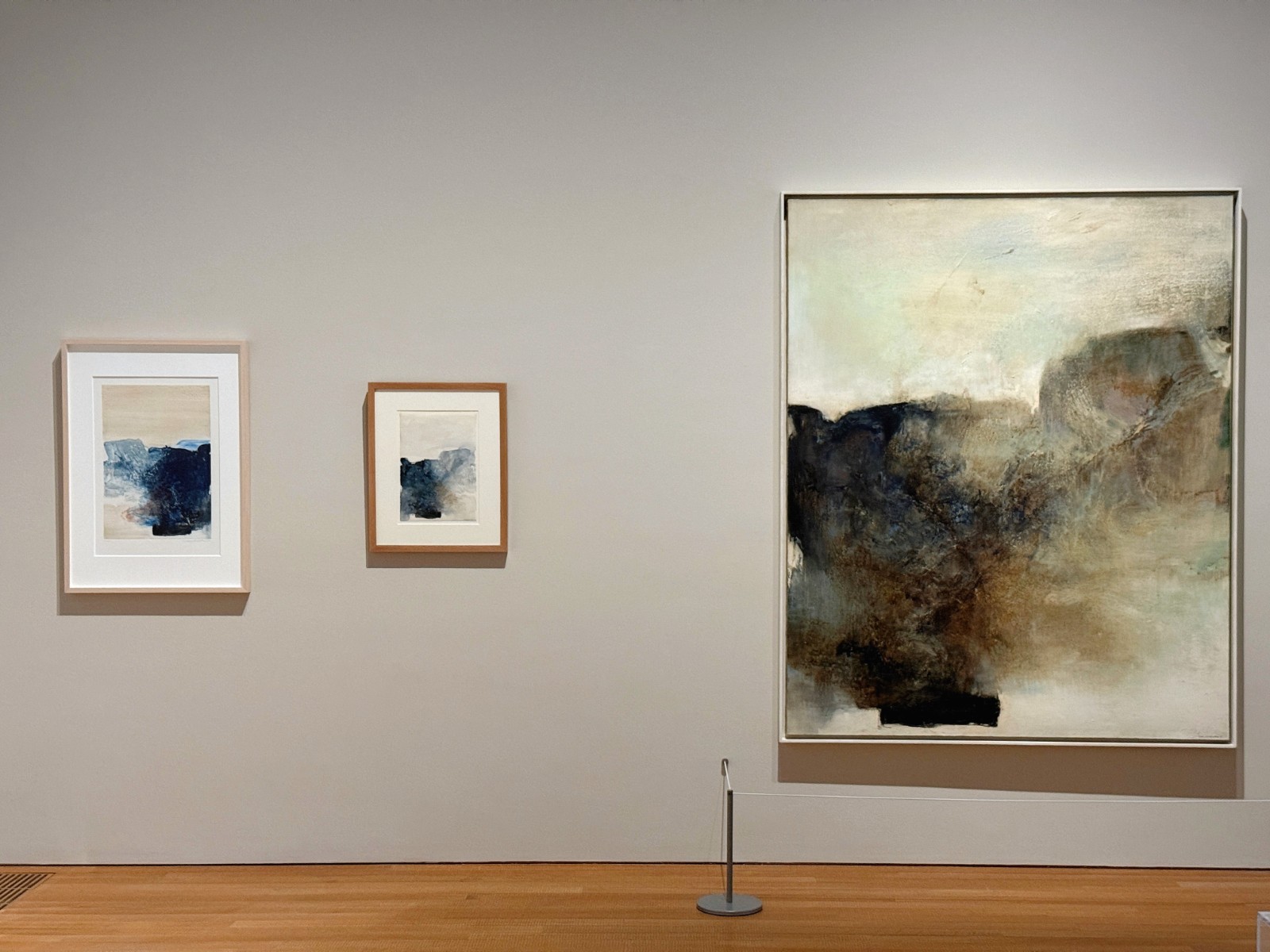 趙無極作品《無題》,蝕刻版畫,1978年;《無題》,水彩,1977年;《10.03.78》,油彩布本,1978年。(從左至右)