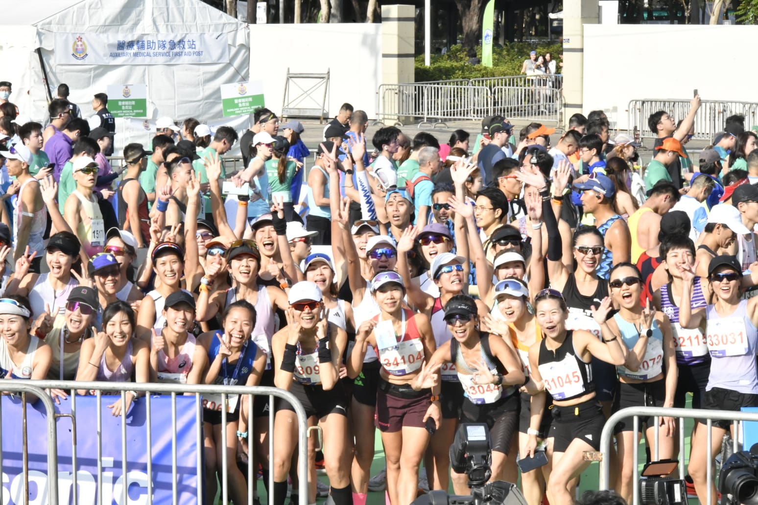 賽事期間有跑手不適,警方接報上午9時許,一名58歲馬拉松男跑手在鰂魚涌公園附近暈倒,昏迷送律敦治醫院。另一名女跑手其後亦在銅鑼灣崇光百貨對開報稱不適要送院。一名男跑手就在維園過終點後一度跌倒,需要坐輪椅離開。(蔡啟文攝)