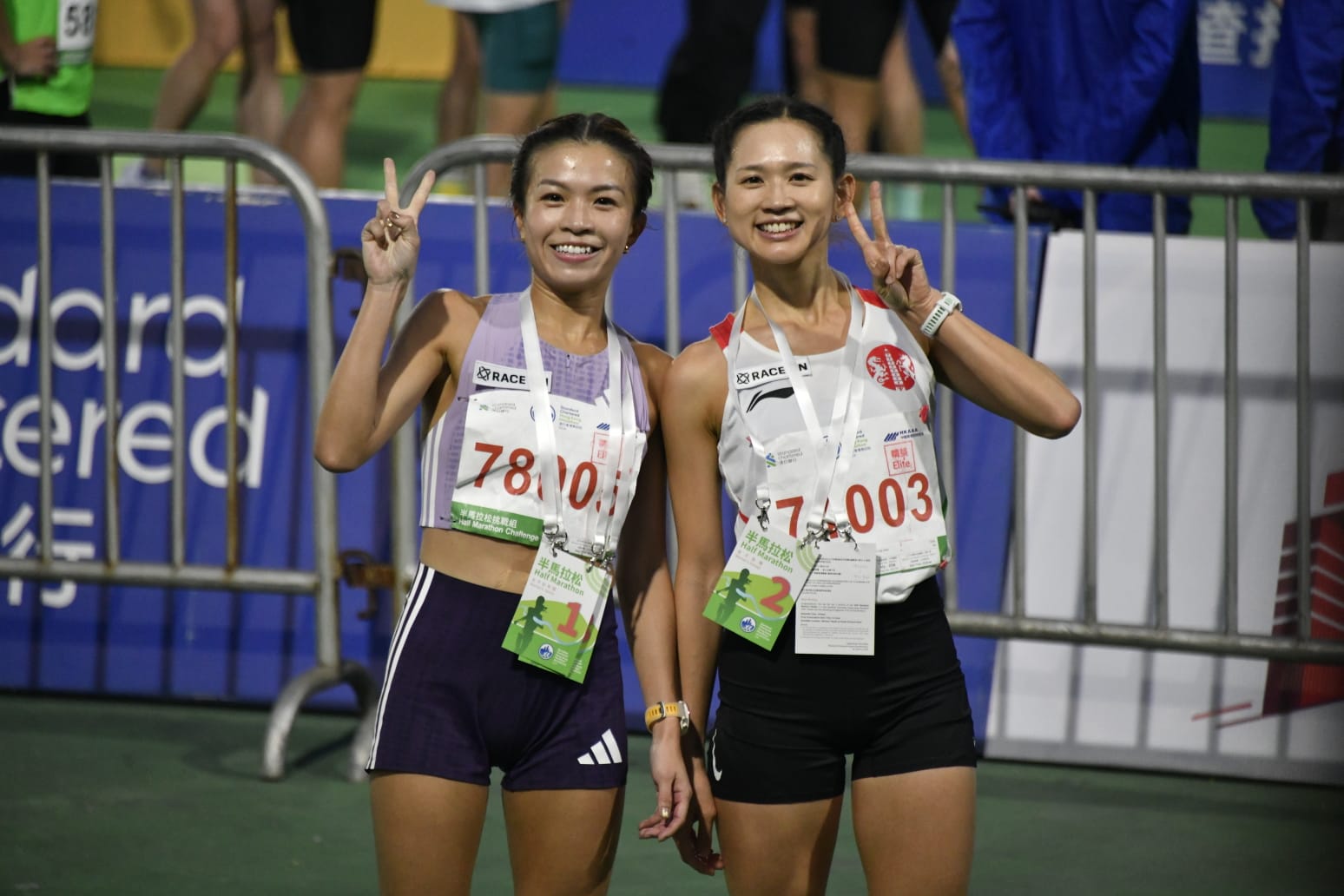 半馬挑戰組女子組冠軍則由新加坡跑手施文麗(左)奪得。