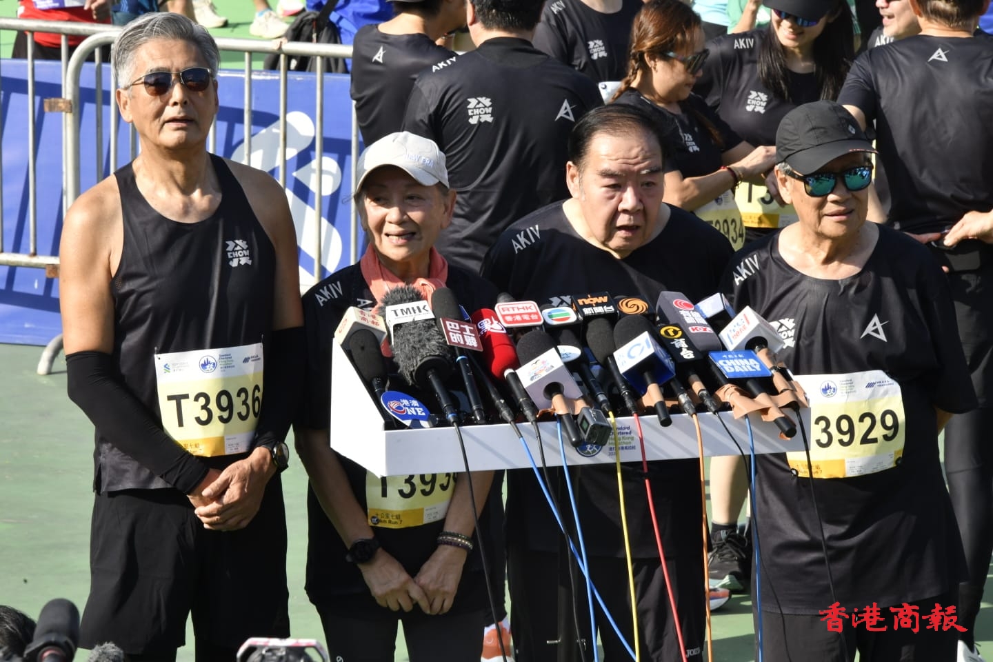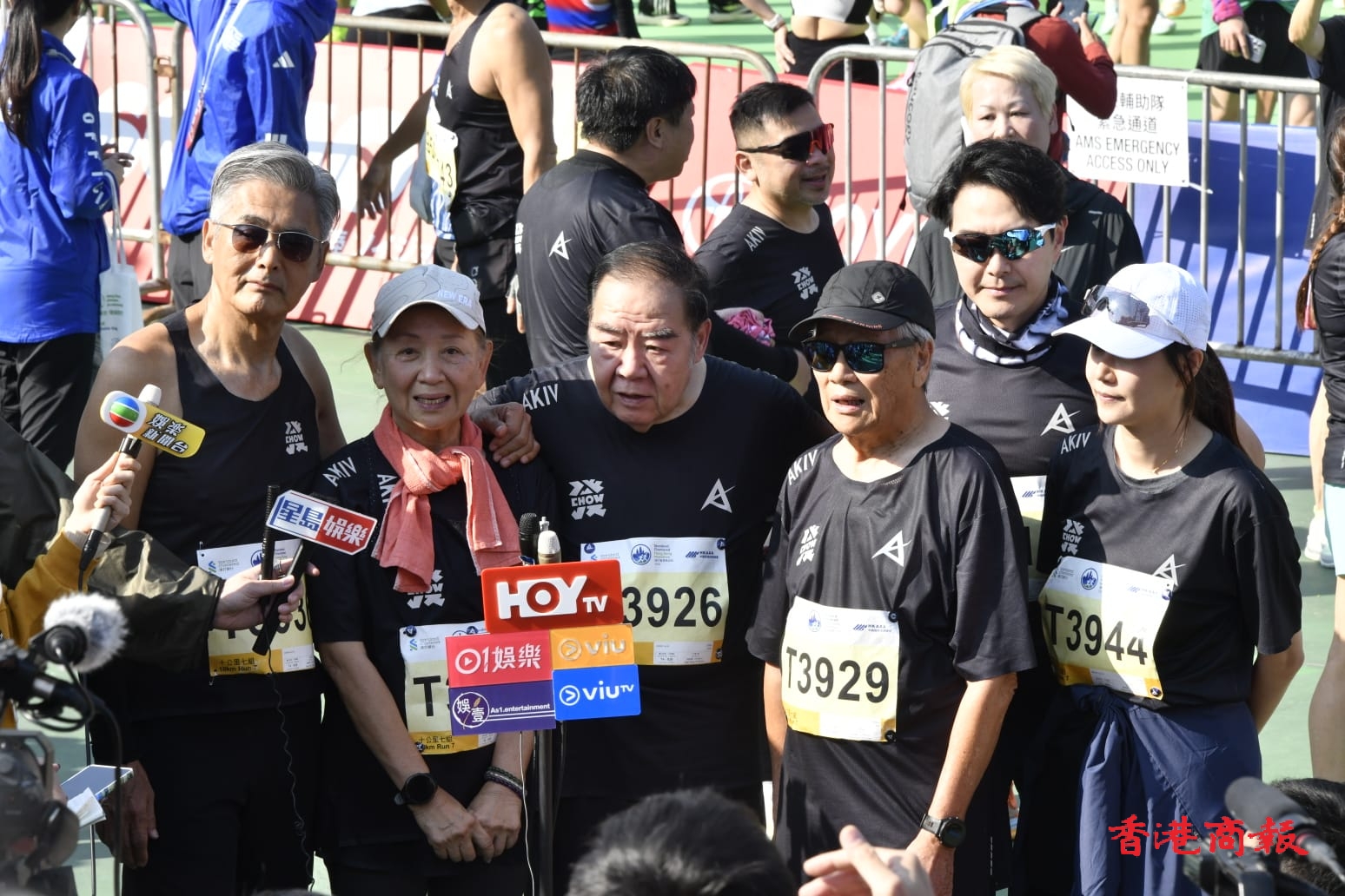 周潤發早上現身東區走廊起跑點,狀態看起來不錯,與其他跑手打招呼及合影,還向市民揮手。