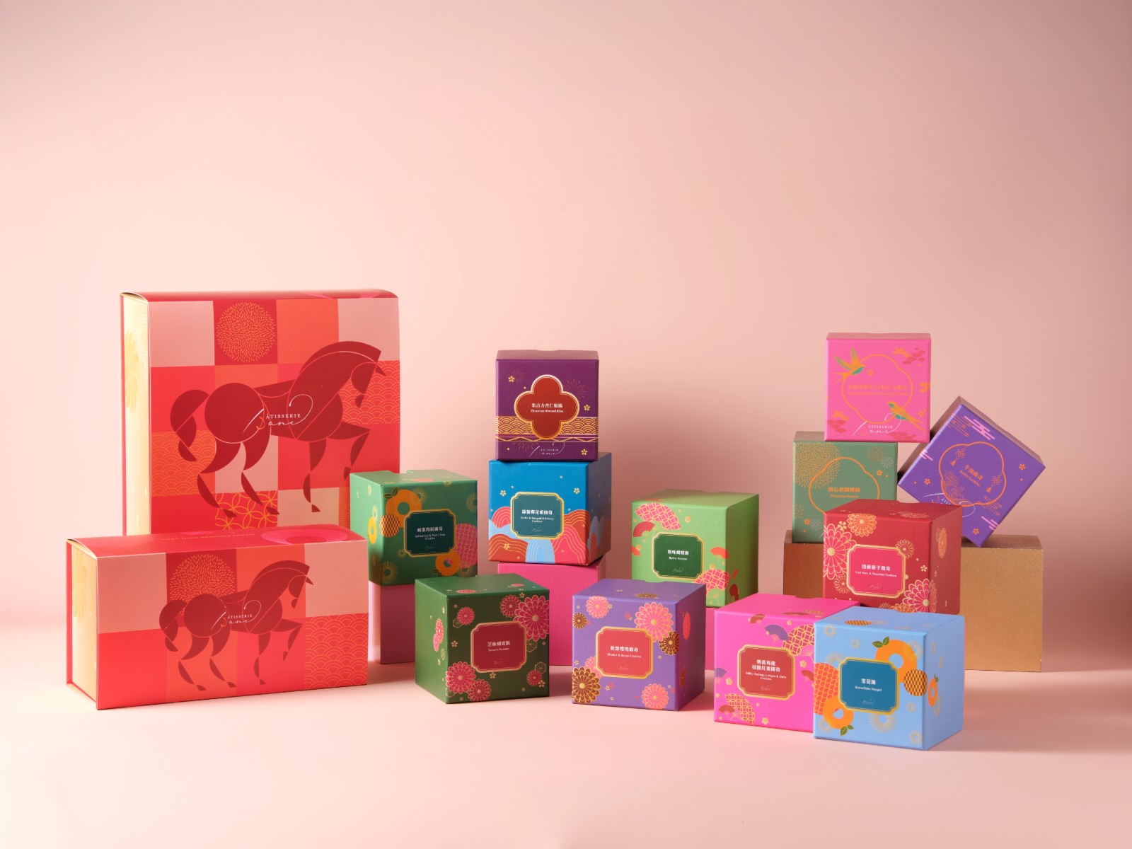店舖帶來「瑞馬迎春禮盒(兩件裝)」及「福馬賀歲禮盒(四件裝)」兩大禮盒套裝,售價分別為HK$198(早鳥優惠HK$178)及HK$388(早鳥優惠HK$348)。即日起至2月6日,購買任何五盒賀年甜品禮盒,可享買五送一禮遇,相當於83折;包裝設計以喜慶的大紅色為主調,巧妙運用多種紅色配色拼湊背景,以高貴典雅的金色花紋作點綴,增添華麗質感;圖案則以幾何圖形組成生動的駿馬,融入象徵吉祥的雲紋設計,祝願來年瑞馬迎春、馬到功成、好運連連。 (記者 Janice)