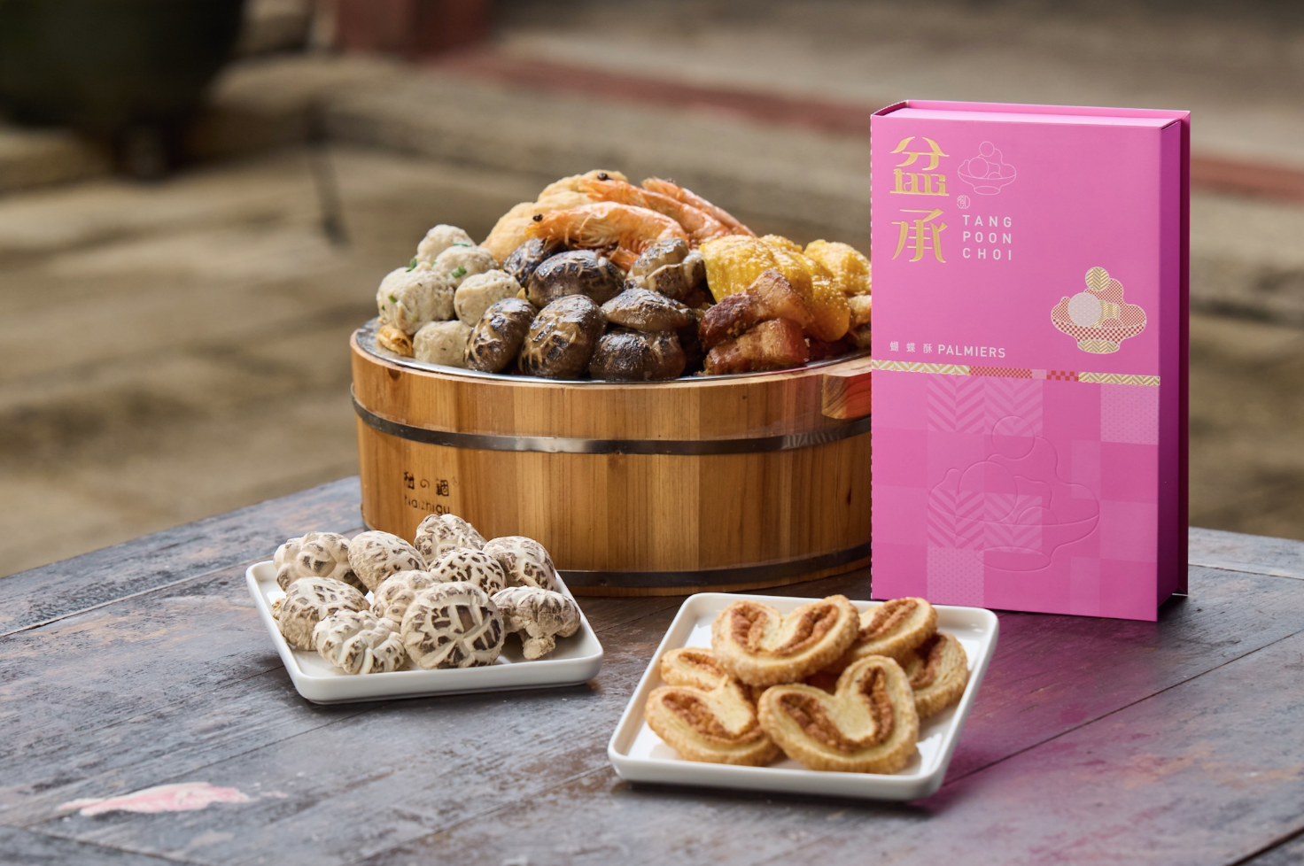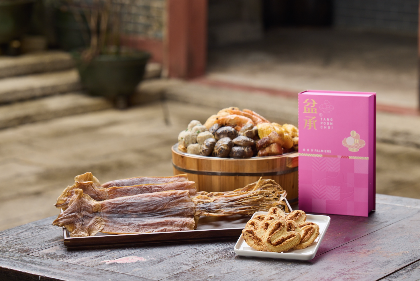 元朗屏山承載着八百年歷史,在這裏飲食不僅為果腹,還是一種維繫宗族情感的儀式。「屏山傳統盆菜」多年來在主理人、鄧氏第26代傳人「聯哥」鄧聯興的堅持下,以柴火與新鮮食材守護着正宗的圍村風味。聯哥與女兒攜手推出全新時尚品牌「盆承 TANG POON CHOI」,寓意「盆菜傳承」,將被列入非物質文化遺產的盆菜文化,以及傳統宴席「九大簋」的精髓,化身為能隨時品嚐、精緻時尚的甜點。如盆菜風味蝴蝶酥系列的蝴蝶酥不只有甜味,除純粹牛油香氣的經典原味外,還大膽將中式烹飪的「提鮮」與「解膩」智慧融入法式酥皮。品牌運用盆菜中不可或缺的提鮮靈魂土魷(乾魷魚)入饌,土魷經鮮磨處理,融入充滿牛油香氣的酥皮中,入口有海洋的鹹鮮與焦糖的甜脆在口中碰撞,風味濃郁醇厚;子薑菠蘿味蝴蝶酥則清爽解膩,靈感源自九大簋中的子薑菠蘿,菠蘿味的天然果甜與子薑獨有的溫潤辛香結合,清新解膩。系列設有3片裝HK$78、8片裝HK$168 及12片裝HK$238三種規格,成為「可以帶走的香港記憶」。
