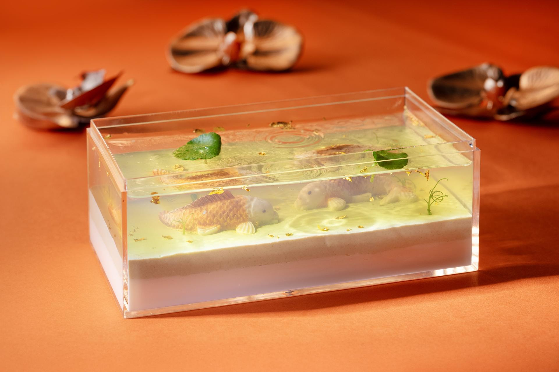 有別於傳統賀年糕點,今年酒店推出「錦鱗如意凍」(價格HK$208),以靈動鯉魚悠游於晶瑩啫喱之中,以班蘭葉、椰奶和忌廉等材料層疊出三重色彩與口感,底層是醇厚的椰香,中層飄散着清新的班蘭,上層是清澈的啫喱,內裏裹着造型靈動的朱古力鯉魚,象徵吉祥如意。各款禮盒均以喜慶亮麗的禮盒盛載,選用FSC環保紙材製造,質地耐用,享用糕點後作首飾盒或儲物盒循環再用,大方得體亦為環保盡心。於2月8日前於帝都、帝京、帝景及帝逸酒店購買可享提前預訂優惠。
