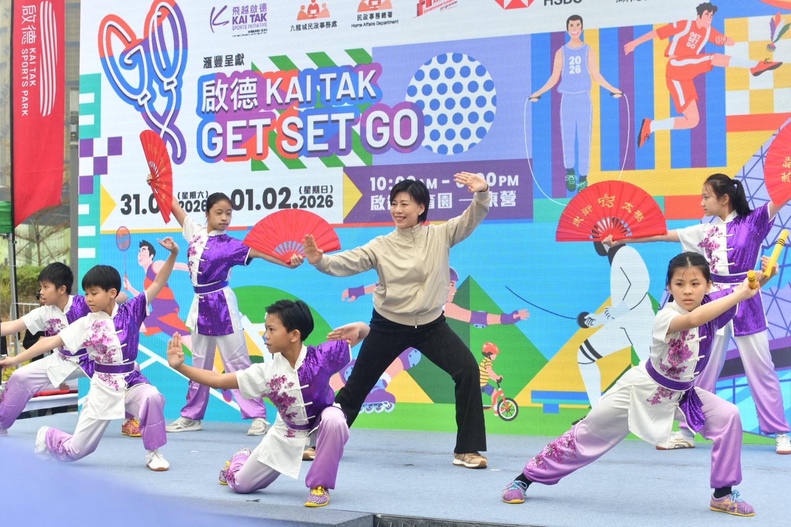 由飛越啟德及九龍城民政事務處合辦,啟德體育園協辦,並由啟德體育園卓越創始合作夥伴滙豐冠名贊助的年度大型社區嘉年華「滙豐呈獻:啟德GET SET GO 2026」今日(31日)起一連兩日在啟德體育園東營舉行,活動現場超過60個攤位遊戲、運動體驗及一系列精彩表演,鼓勵各年齡及不同運動水平的市民參與,享受一起做運動樂趣,還有推廣全民運動。