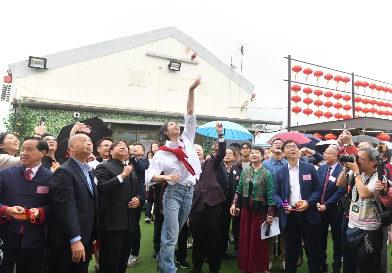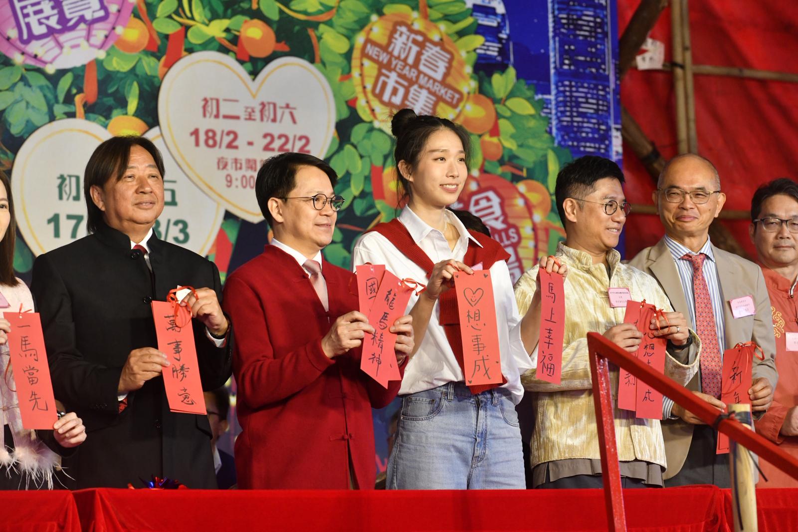 胡健民及後和一眾嘉賓到許願樹拋寶牒祈福,第二次便成功將寶牒拋上樹。江旻憓除了拋寶牒外,亦成為不少市民和小朋友的「集郵」對象,她亦來者不拒,與多人合照留念。