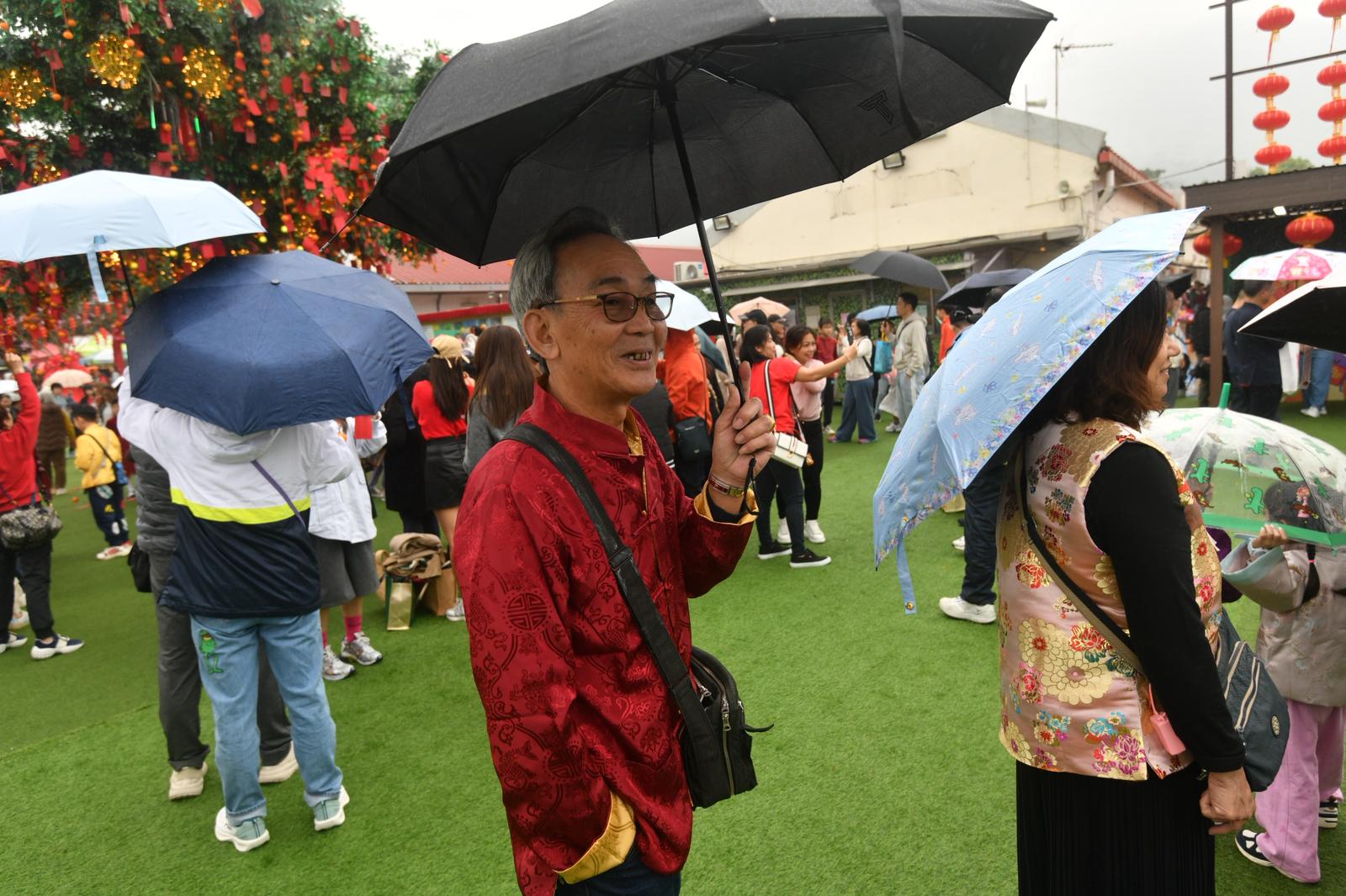 現年73歲、從事物流業的梁先生形容,農曆新年前往林村是其傳統習慣,直言「嚟左幾廿年」,今天和孫兒前來一起拋寶牒,希望馬年身體健康和世界和平,但下起雨來,氣氛「就差咁啲」。