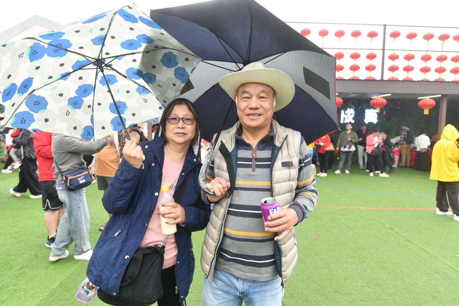德國遊客Rolf(最右)表示,林村現場氣氛非常熱鬧。