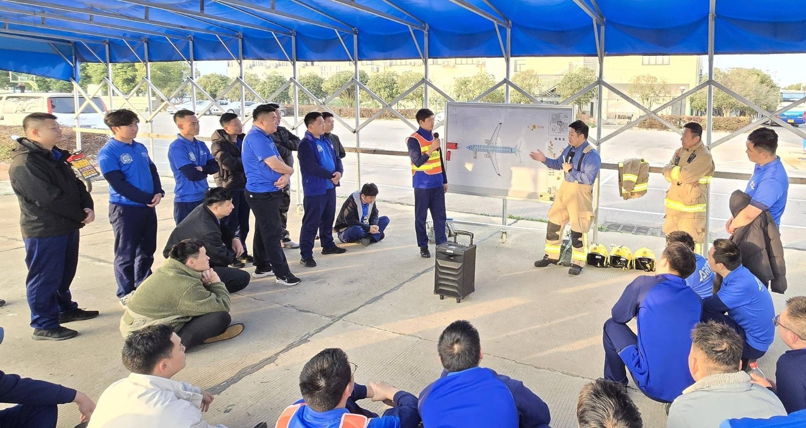 課程內容涵蓋多項航空應急重點,包括:「飛機災難評估」、「飛機引擎火應對」、「飛機機艙火應對」、「燃油洩漏事故處理」及「消防車輛定位與現代戰術部署」等。此外,教官亦分享了來自世界各地機場消防隊的滅火救援經驗,並帶領學員在模擬飛機場景中進行實火演練,進一步提升實戰能力與應變技巧。