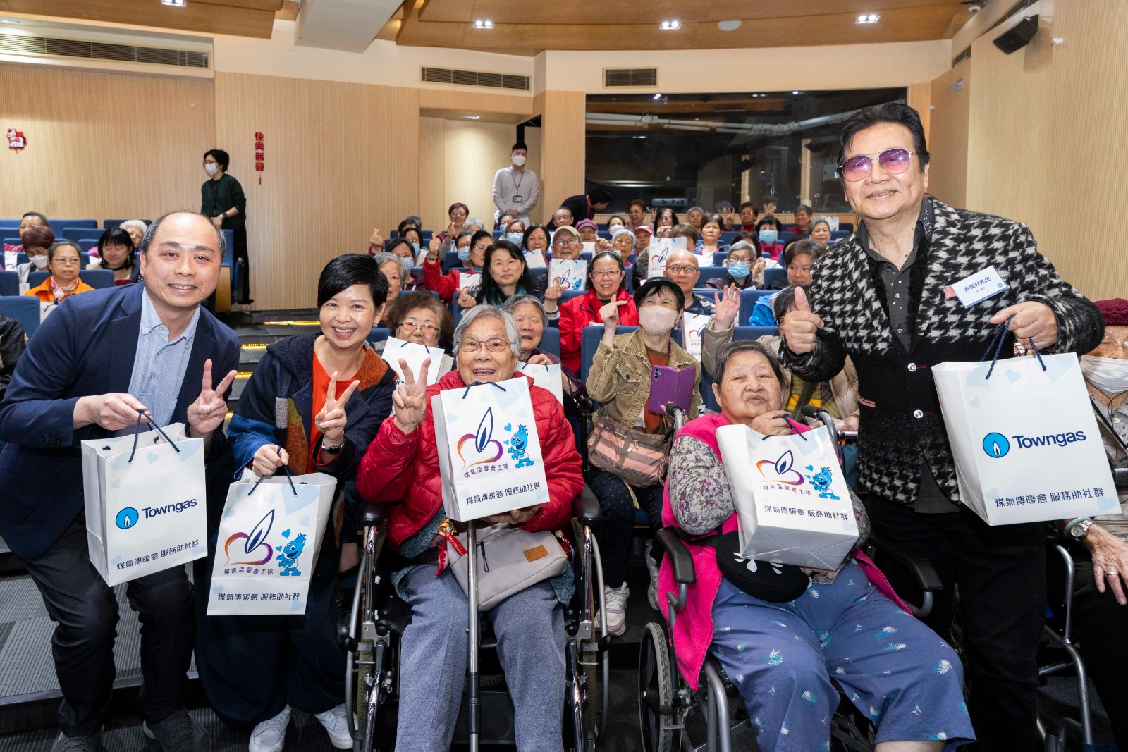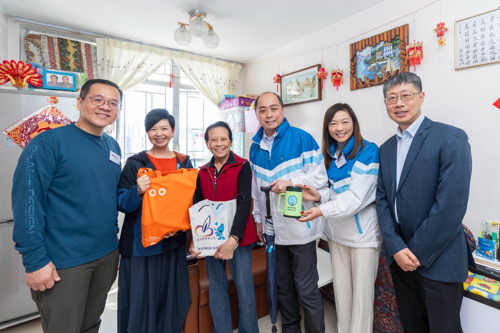 房屋局局長何永賢、煤氣公司營運總裁—香港業務鄭曉光一同出席捐贈啟動禮,並向會場內200多位長者派發福袋。鄭曉光表示:「煤氣公司的服務與市民的衣食住行息息相關;今次得到房屋局的大力支持,為老友記送上感受得到的溫馨暖意,同時亦是一個嶄新開始,預示著未來將有很多合作機會,為房署轄下的公共屋邨長者舉辦多元公益活動。」