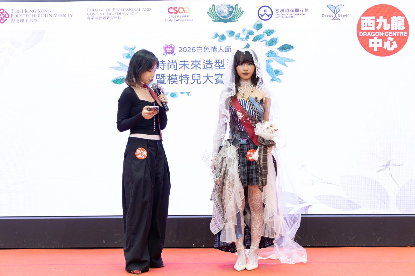 以環保為題的「時尚未來造型達人暨模特兒大賽」於3月14號白色情人節,這個充滿愛和浪漫的日子於西九龍中心隆重舉行,讓一班熱愛時尚及支持環保的學生利用造型穿搭技巧,令二手衣物煥然一新。今次活動以「婚禮」為主題理念是由香港理工大學專業及持續教育學院學生事務處與慈濟環保願行館共同構思出來,婚禮象徵承諾與約定,不僅代表人與人之間的情感連結,亦引導我們反思對衣物的態度,以及如何透過負責任的時尚選擇,實踐對可持續發展的承諾。