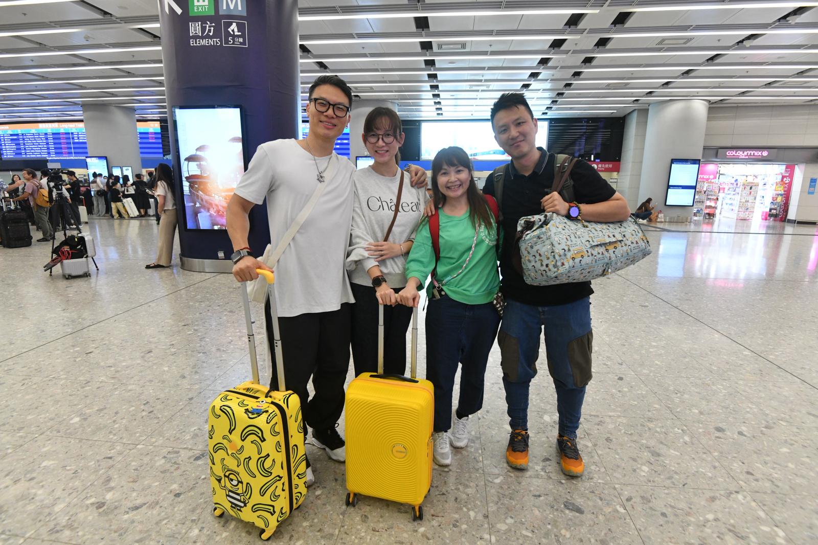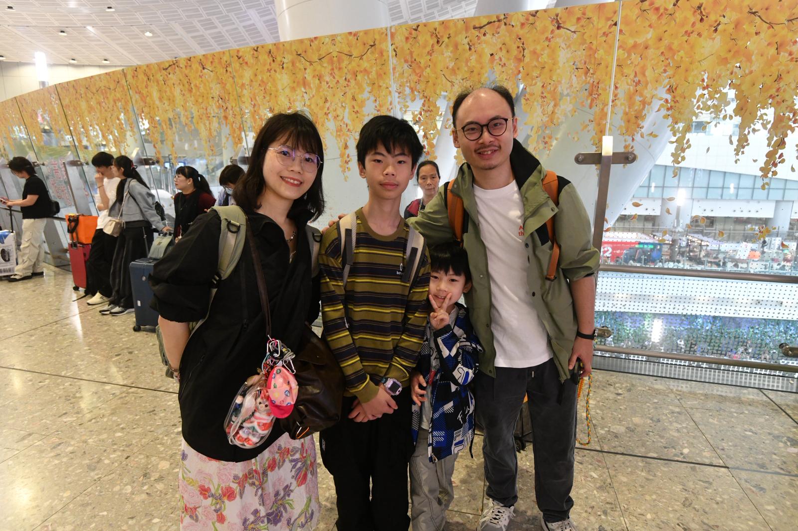 市民劉先生一家四口,以及外父和外母一行六人,把握長假前往廣東省祭祀先人和探望親人,他們認為西九龍高鐵站秩序大致良好,井井有條。