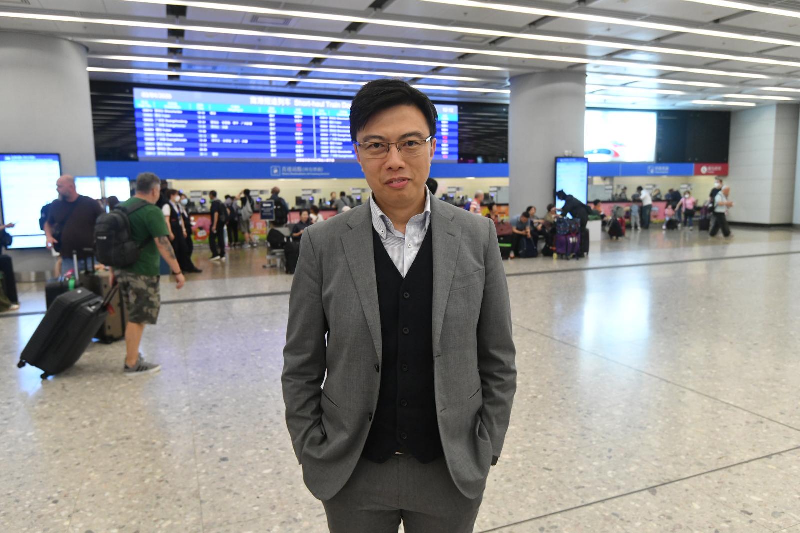 崔定邦表示,看到市民非常開心,希望他們接下來數天玩得高興。他預計復活節及清明節長假的整體出境人數,有機會超過50萬以上人次。(記者 葉家亨/攝影 崔俊良)