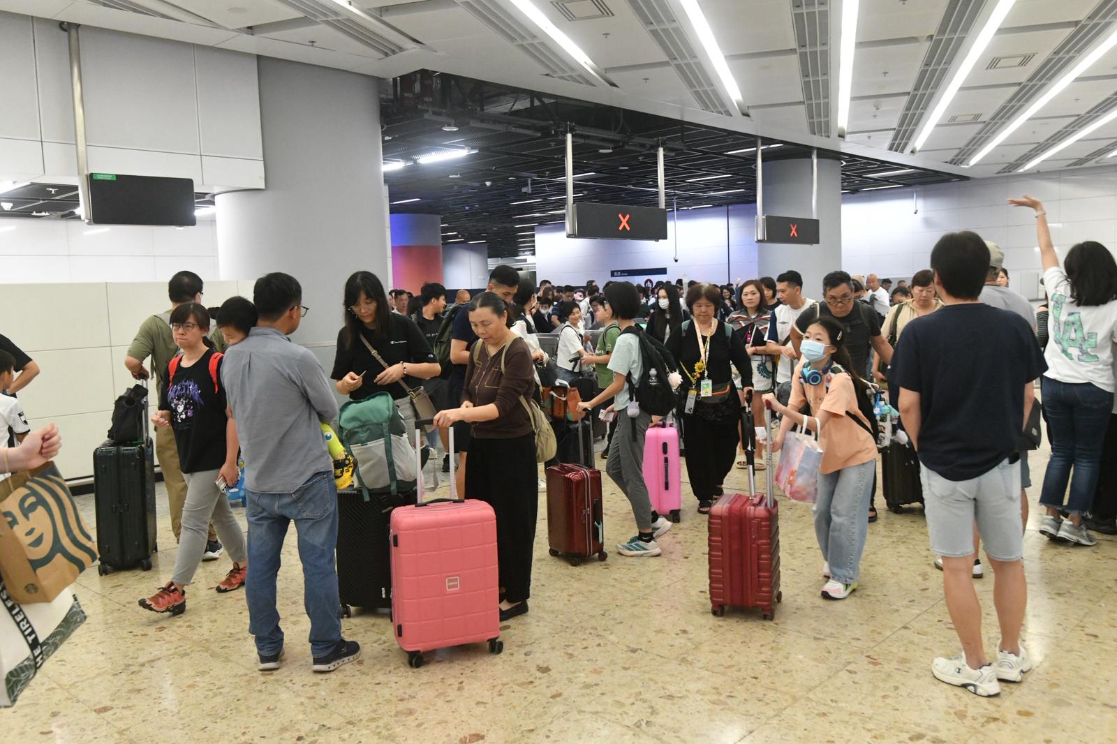 頂圖:一連五日的復活節和清明節長假期今日結束,不少港人經西九龍高鐵站入境。