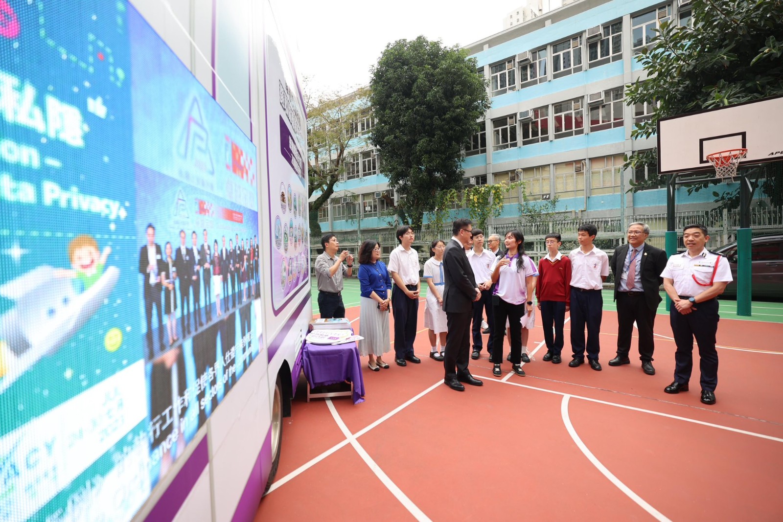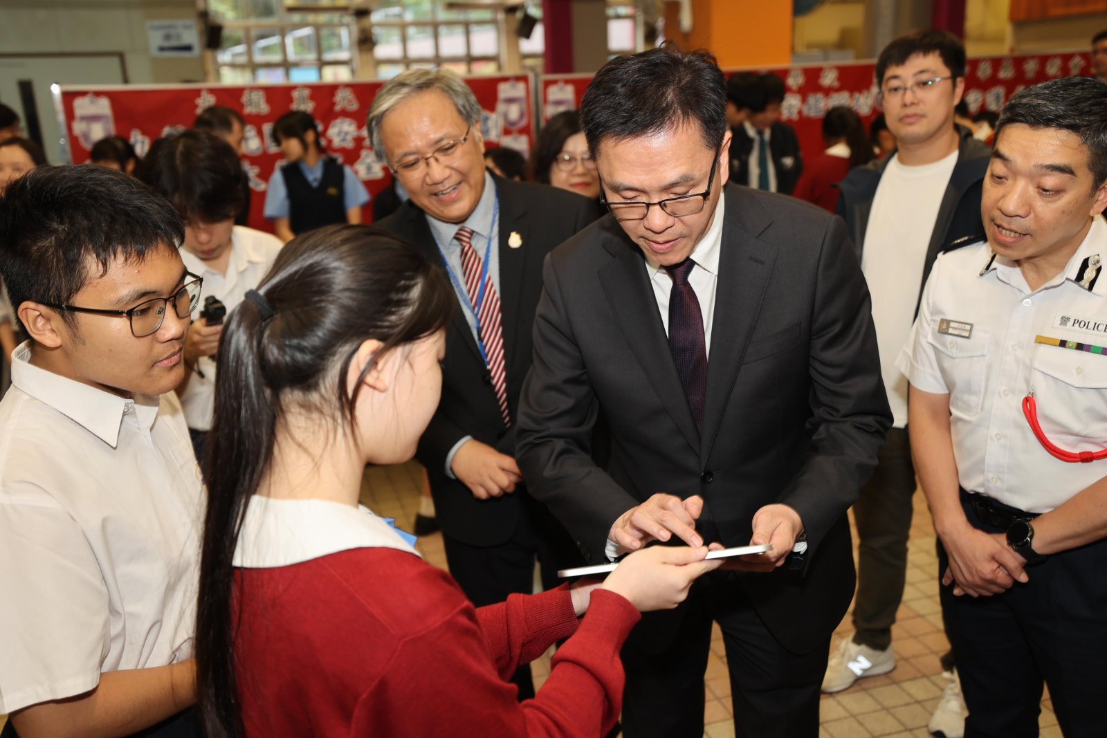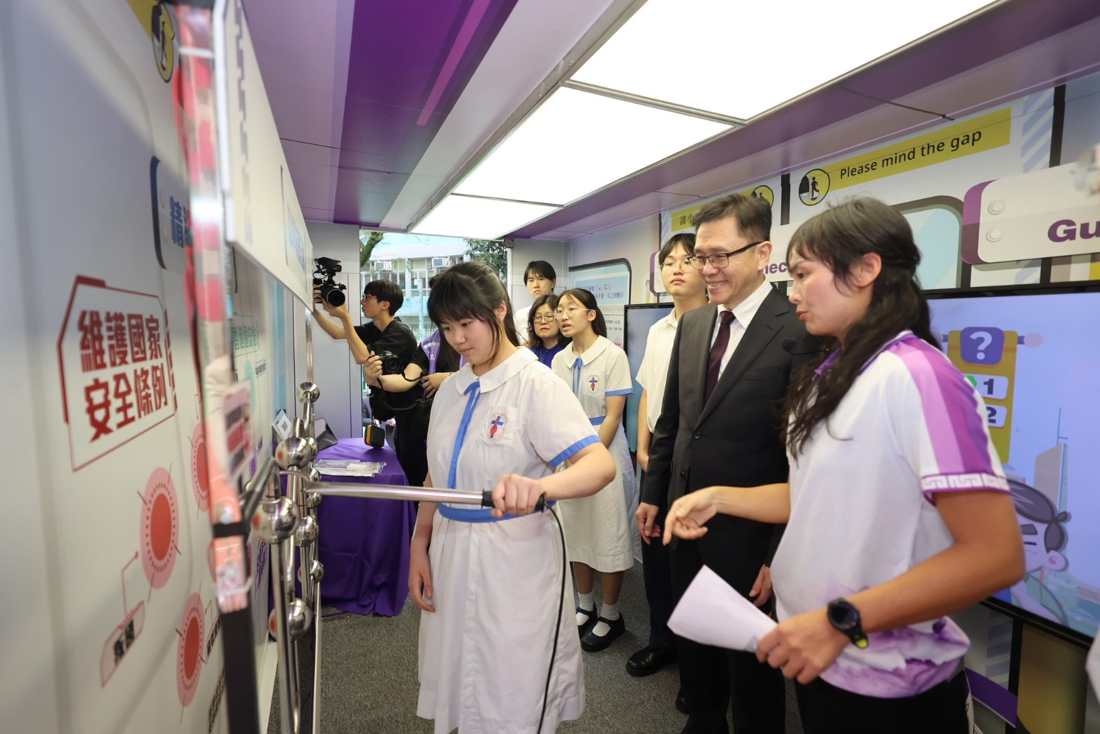 孫東首先參觀校內的「NSpeed國安號」宣傳車,車內的互動遊戲讓學生親身體會「國家安全·我做得到」的重要訊息,理解國家安全與日常生活息息相關。他隨後觀賞「國家安全教育展板」,並透過聯校的攤位遊戲與學生互動交流,聆聽學生們對國家安全的看法與理解。孫東還欣賞學生們的中國舞表演,感受年輕一代對國家文化之認同與熱愛。