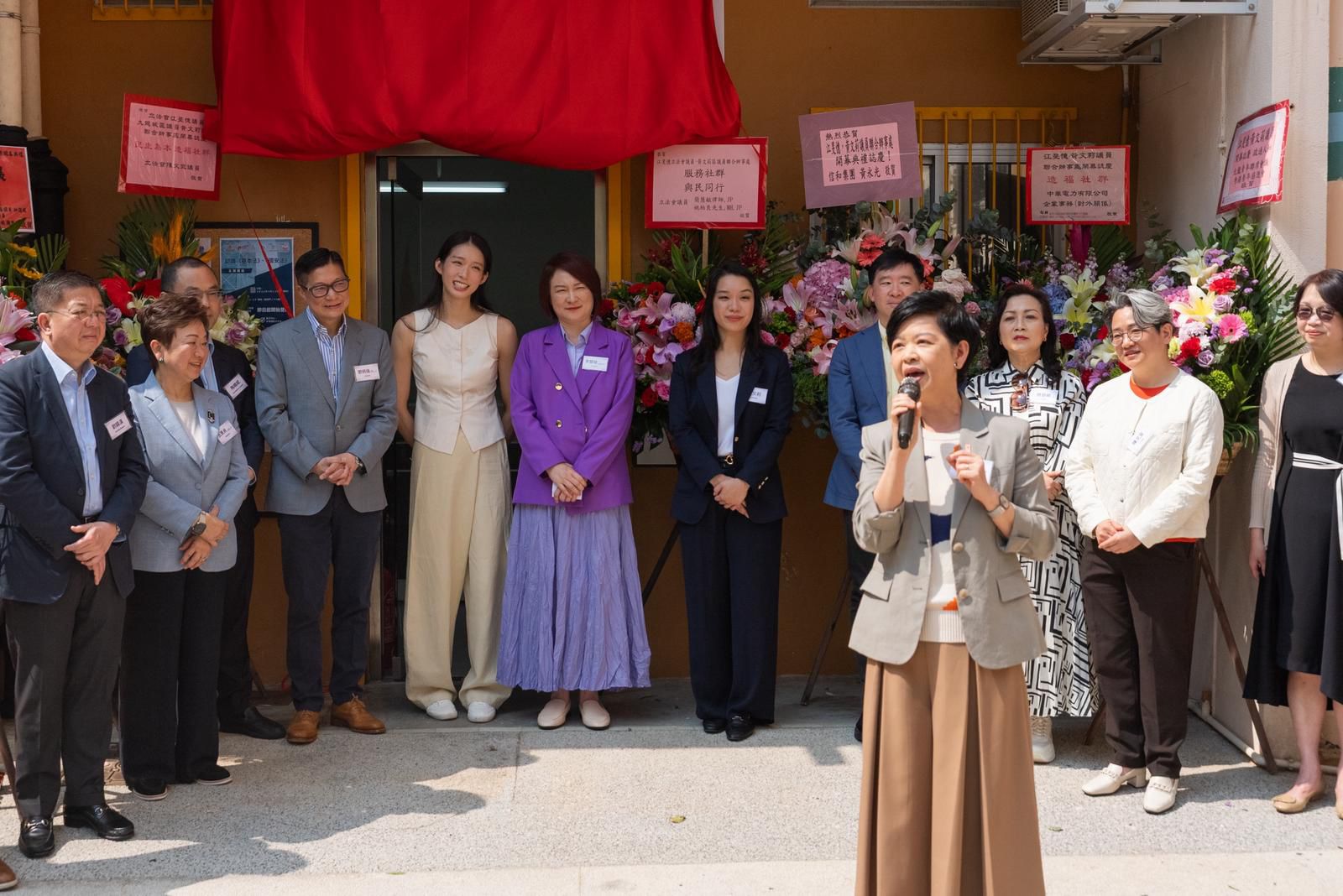 ⽴法會主席李慧琼在開幕禮上,肯定了江旻憓議員作為⽴法會新成員,⼯作努⼒認真,亦經常為旅遊界發聲。她表示,⾺頭圍邨的重建⼯作任重道遠,歡迎兩位⼗分有能⼒的年輕議員選擇在九⿓城區開辦事處,加強了該地區的服務,並叮囑議員需多與居⺠溝通,落實居⺠需求。她亦敦促兩位議員要多與年輕⼈交流,為年輕⼀代樹⽴好的榜樣,助年輕⼈追求夢想。