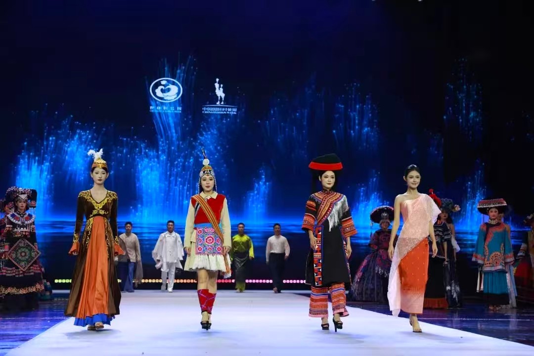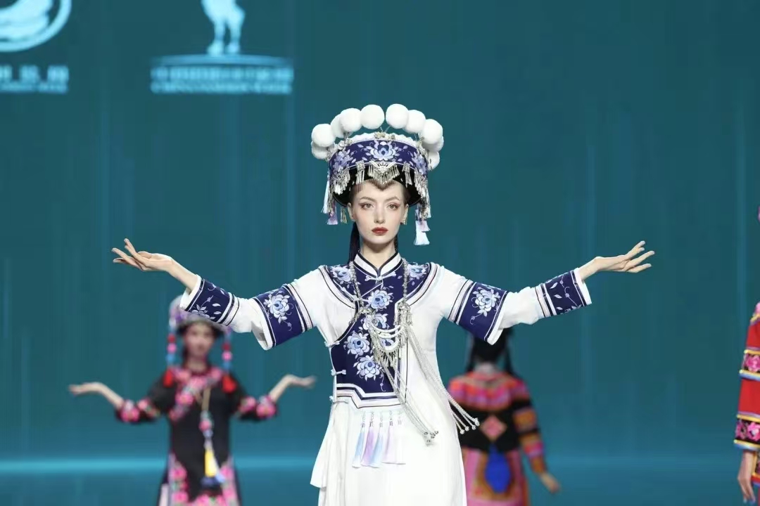 在各階段的服裝服飾展中,一件件融合非遺技藝與時尚設計於一體的服裝服飾驚艷亮相。擁有厚重文化底蘊的楚雄彝繡別具一格,圖案構思抽象、針法多樣精緻、配色大膽獨特,每一件彝繡作品都是彝族文化的生動載體。雲南各民族的服飾如調色盤上的濃墨重彩,哈尼族的靛藍、白族的扎染、納西族的披星戴月……不同民族的服飾風格各異,卻共同暈染出「有一種叫雲南的生活」的秀美圖景。貴州苗族銀飾綴滿花鳥紋樣,走動間流光溢彩;五指山黎錦以棉線織就山海、日月紋樣,盡顯熱帶風情;涼山州彝族披氈以羊毛手工縫製,靛藍底色配紅色紋樣,盡顯高原民族的豪邁……各地服飾各展其美,與雲南各民族服飾共同勾勒出中華民族服飾的絢麗版圖。不僅如此,此次盛會還匯聚了南亞、東南亞國家的特色服裝,優雅迷人的越南奧黛、莊重大氣的泰式傳統服飾等一一亮相,充分展示了世界文明多樣性,也生動印證了「民族的就是世界的」這一深刻理念。