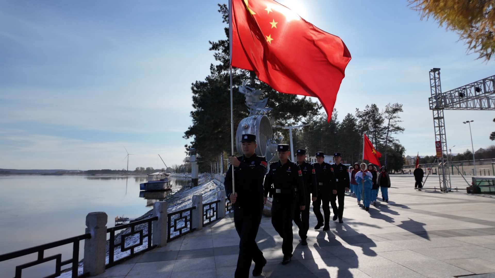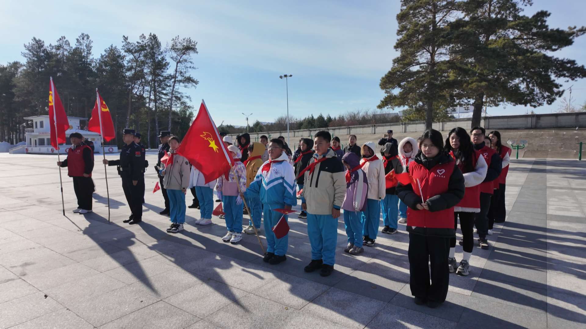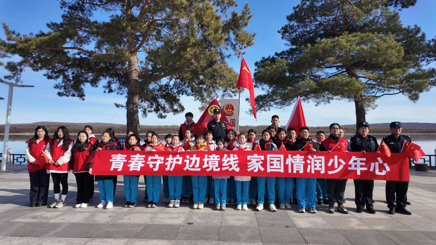 10月13日,黑龍江省呼瑪縣組織少先隊員在173號界碑前開展建隊日活動。民警講述守邊故事,帶領孩子們宣誓、巡邊。