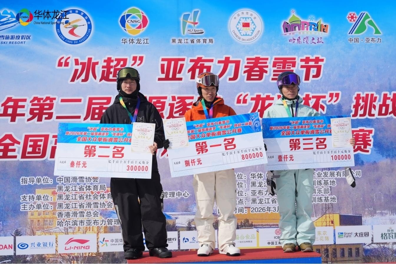 3月8日,「冰超」2026年第二屆雪源逐夢「龍港杯」挑戰二鍋盔全國大眾高山滑雪及單板滑雪公開賽在黑龍江省亞布力體育訓練基地二鍋盔場地圓滿落幕。本次賽事吸引了來自全國各地的100名滑雪愛好者齊聚亞布力,挑戰冰雪極限,享受運動魅力。