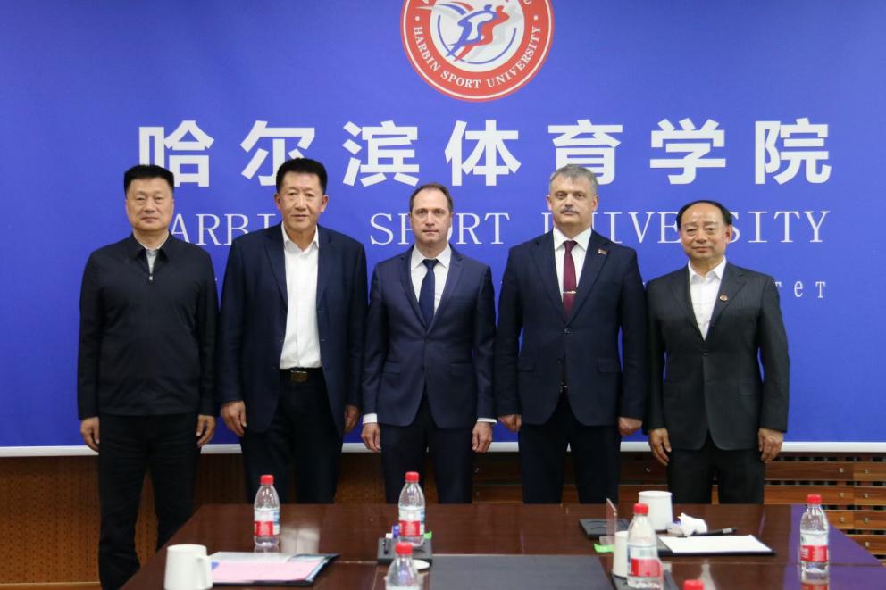 5月21日,白俄羅斯共和國體育和旅遊部長謝爾蓋·米哈伊洛維奇一行與俄羅斯體育部副部長莫洛夫·阿列克謝一行,共同訪問哈爾濱體育學院。通過實地參觀、文化體驗及閉門磋商,就運動康復科研協作、三國冰雪賽事籌備及中醫康復技術應用等多領域達成多項合作意向,為深化中俄白三國體育領域合作注入新動能。