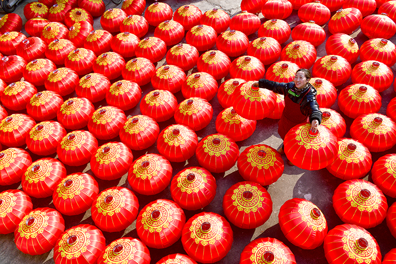 臨近春節,燈籠產品迎來產銷旺季,位於四川省綿竹市雙坪村的綿竹星筠工藝品製作廠,生產廠區的空地和庫房都擺放着琳琅滿目的成品燈籠,20餘名工人正忙着加班加點生產製作各式燈籠,細緻地編扎燈籠骨架、裱糊紅綢、粘貼圖案。而在紅燈籠加工現場,工廠創始人張顯瓊正在焊接燈籠的燈架。