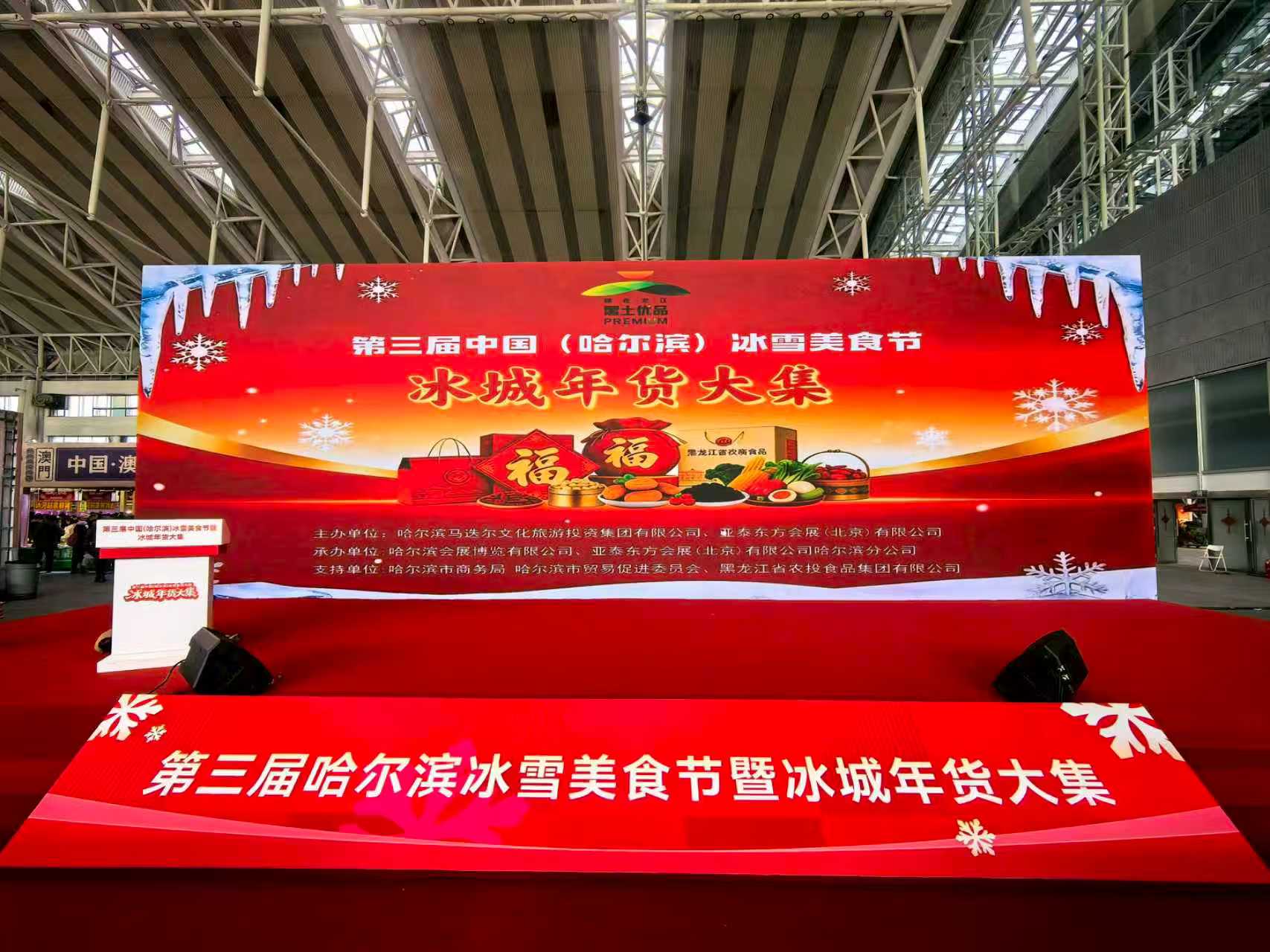 本次活動由哈爾濱馬迭爾文化旅遊投資集團有限公司、亞泰東方會展集團聯合主辦,黑龍江省農投食品集團有限公司作為支持單位,以「黑土優品」品牌為核心引擎,串聯冰雪文化與特色物產,依託農投食品集團成熟的「黑土優品」供應鏈資源亮相本次冰城美食節,活動匯聚黑龍江省香其商貿有限責任公司、黑龍江省農墾龍王食品有限責任公司、黑龍江省地利賽斯食品科技有限公司、哈爾濱好迪娜食品有限公司等多家黑土優品授權企業、龍江老字號及鄉村振興重點縣幫扶企業,設立「黑土優品專區」「消費幫扶展區」兩大核心板塊,集中展示五常大米、鮮食玉米、藥食同源、龍王豆粉、休閒食品等300餘款龍江名優特優質農產品,實現「從黑土地到餐桌」的高效流通。